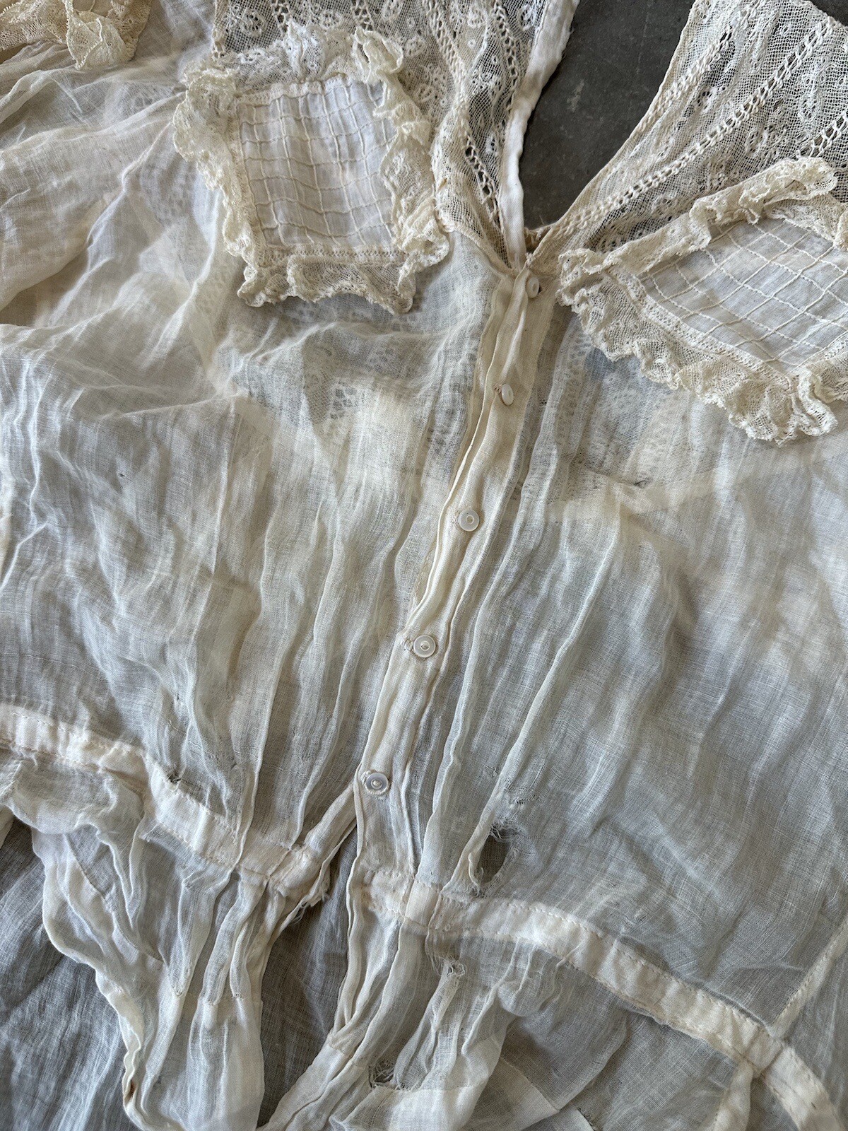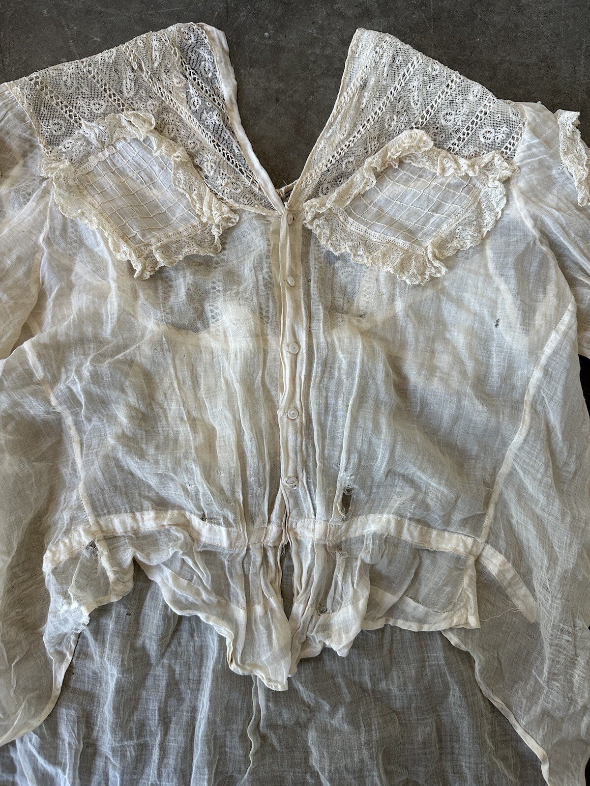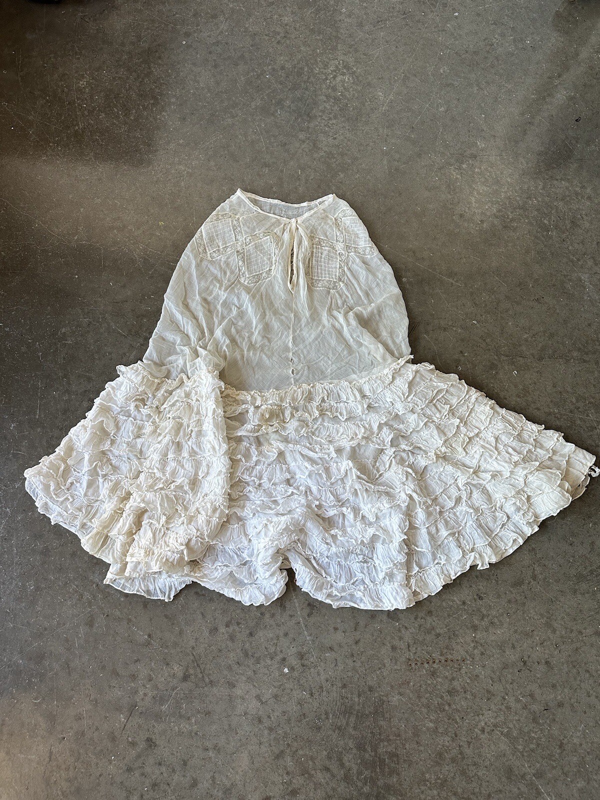 Antique Victorian 3D Lace Silk Ruffle 2 Piece Separates Blouse Skirt Set