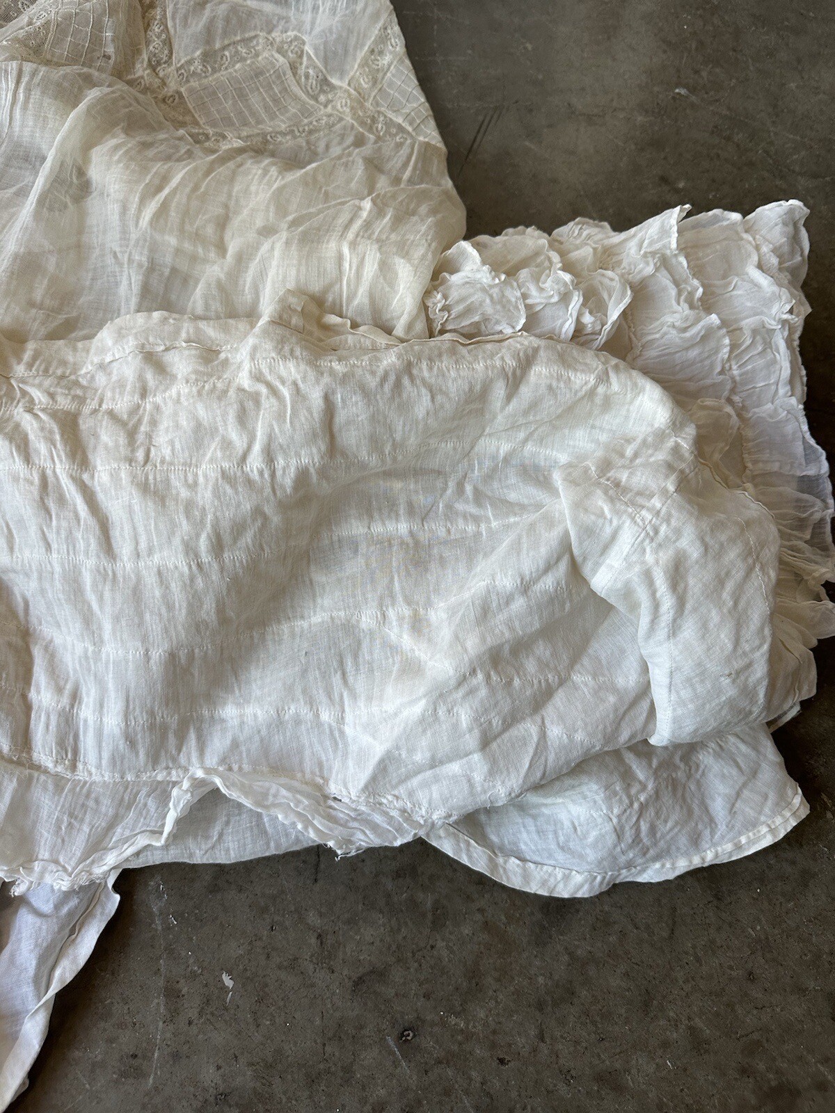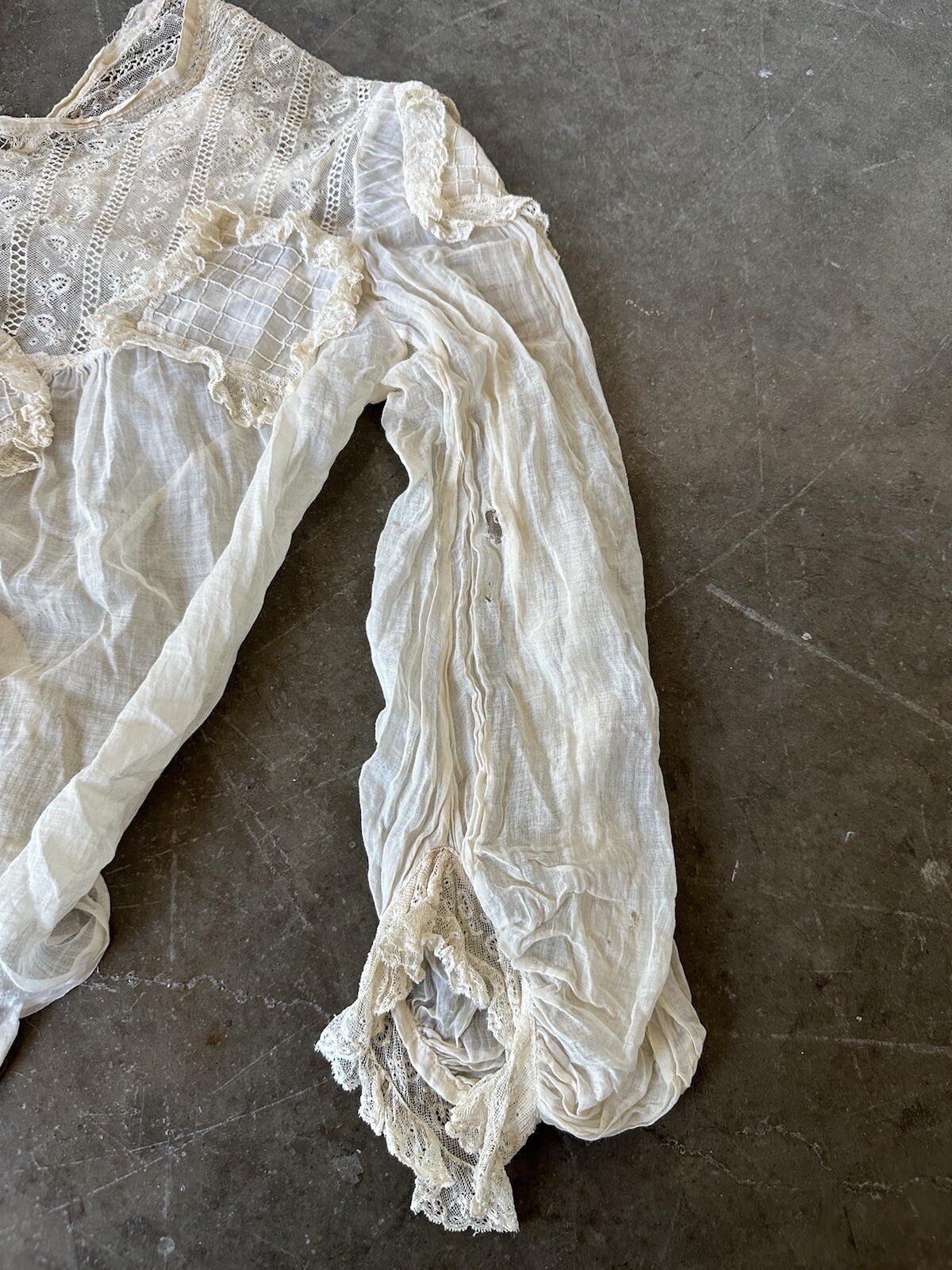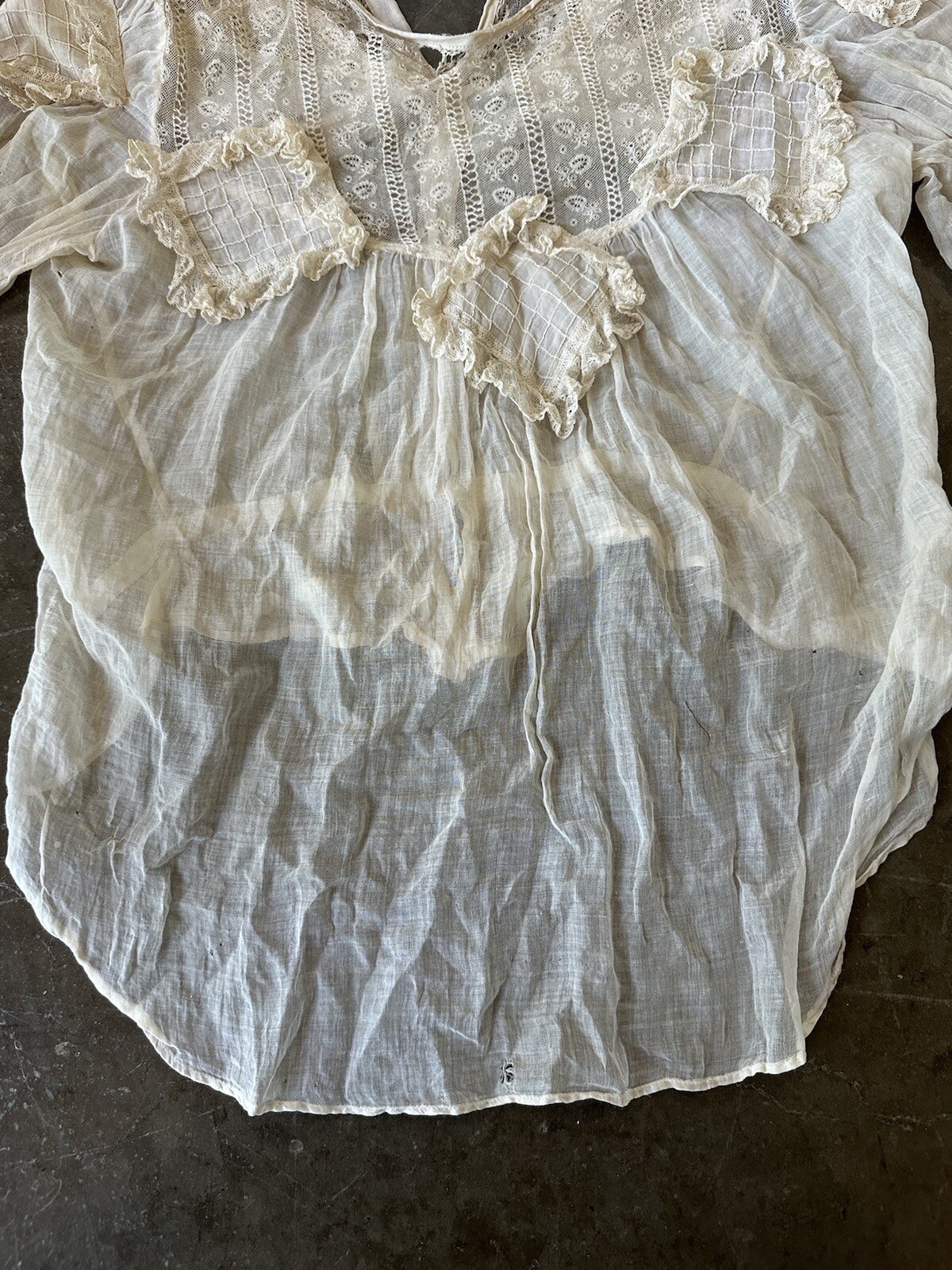 Antique Victorian 3D Lace Silk Ruffle 2 Piece Separates Blouse Skirt Set