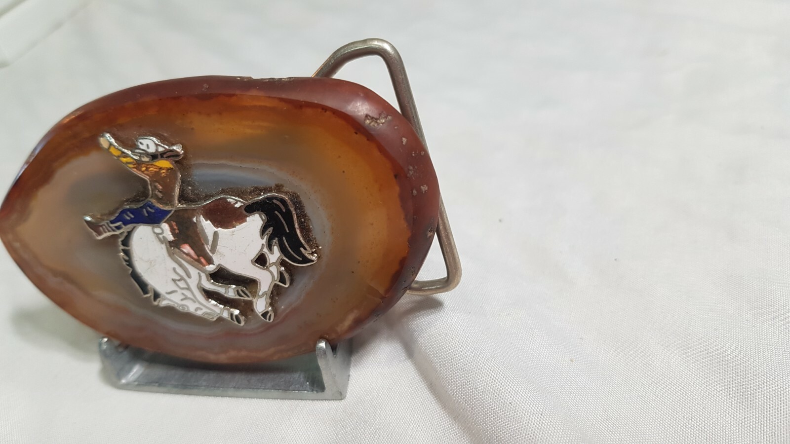 как выглядит AGATE BRONC RIDER COWBOY Belt Buckle Vintage фото