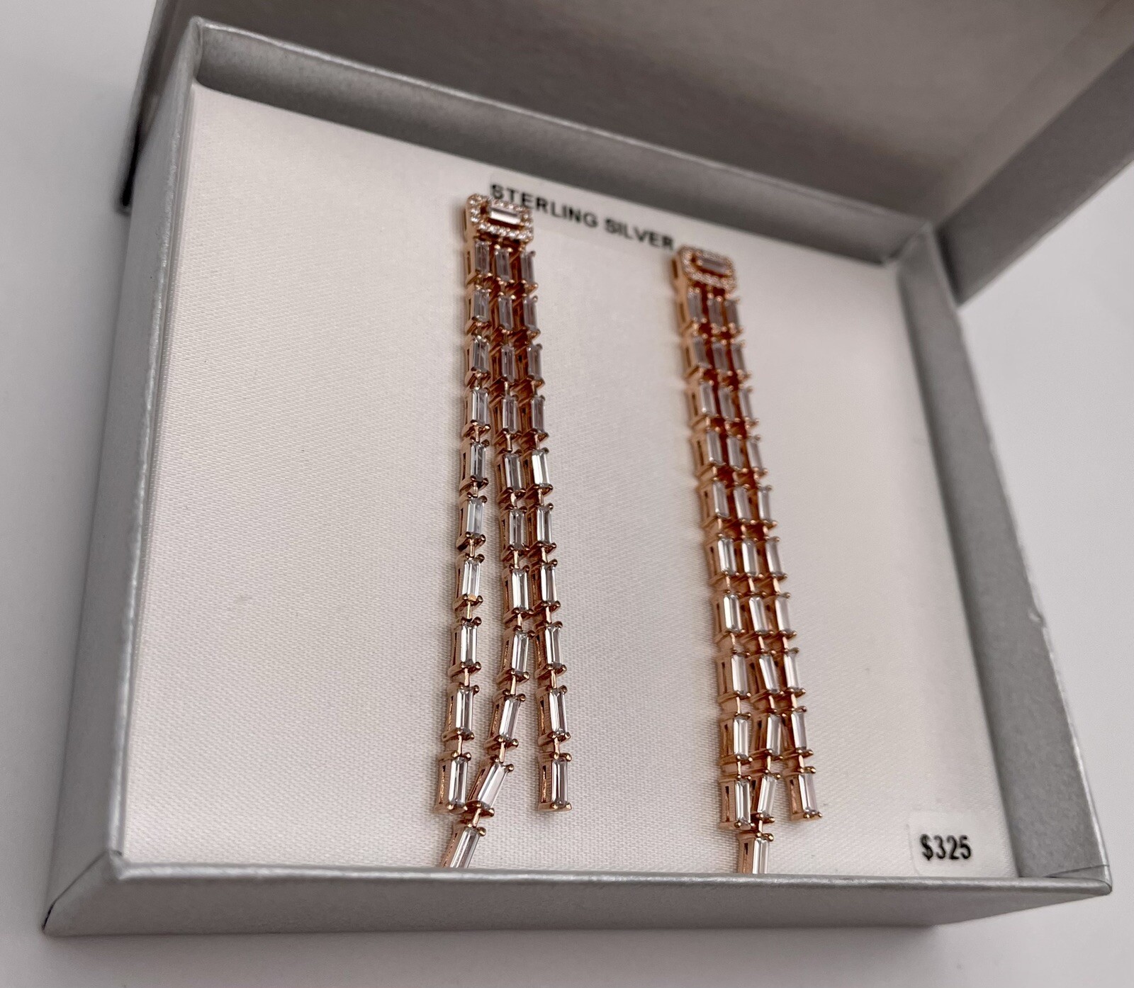 Rose Gold Over Sterling Silver Cubic Zirconia Dangle Earrings MSRP 325