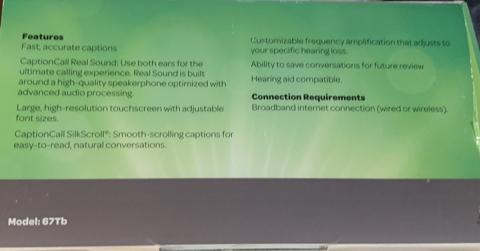 Caption Call 67 Tb Hearing Impaired Amplified Touchscreen Captioned Phone