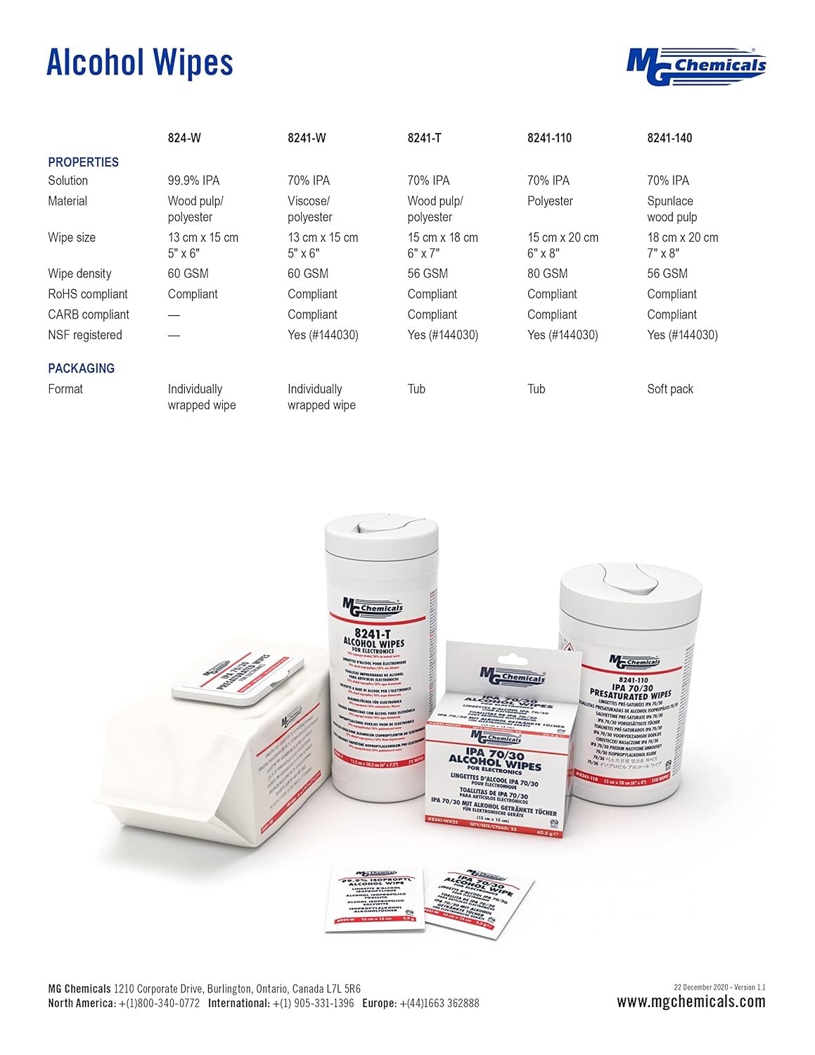 MG Chemicals 99.9 Isopropyl Alcohol Wipe, 6 L x 5 W Bag of 25 824-WX25
