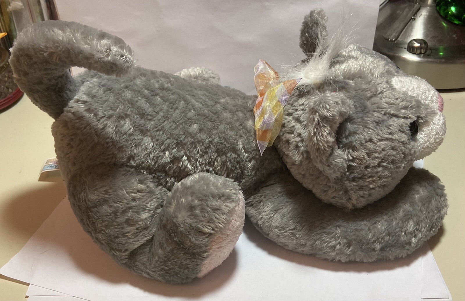 как выглядит Vintage Toys R Us Animal Alley Gray White Cat Plush Stuffed Animal Kitten 12 фото