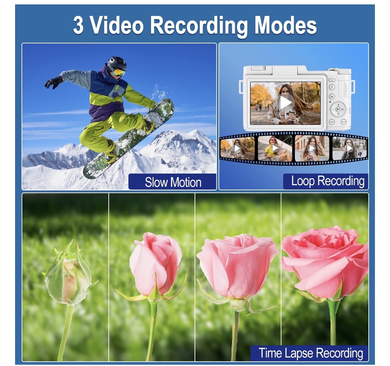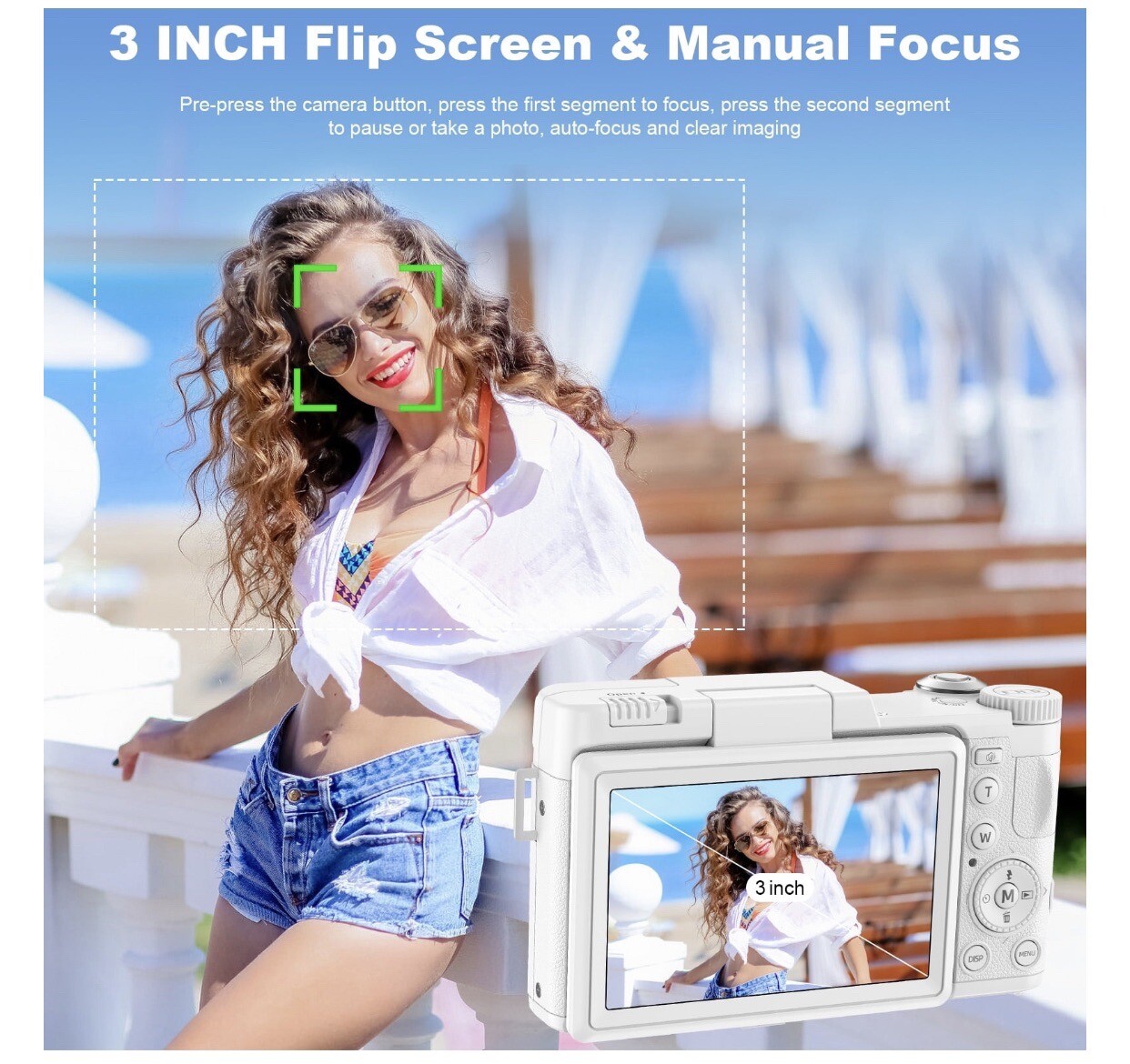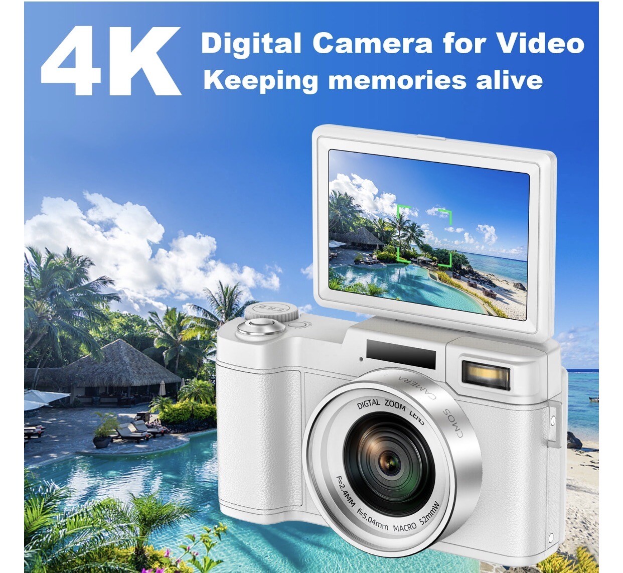 Digital Camera 4K 48MP Vlogging Camera with Liftable Flash 3 180 Flip Screen