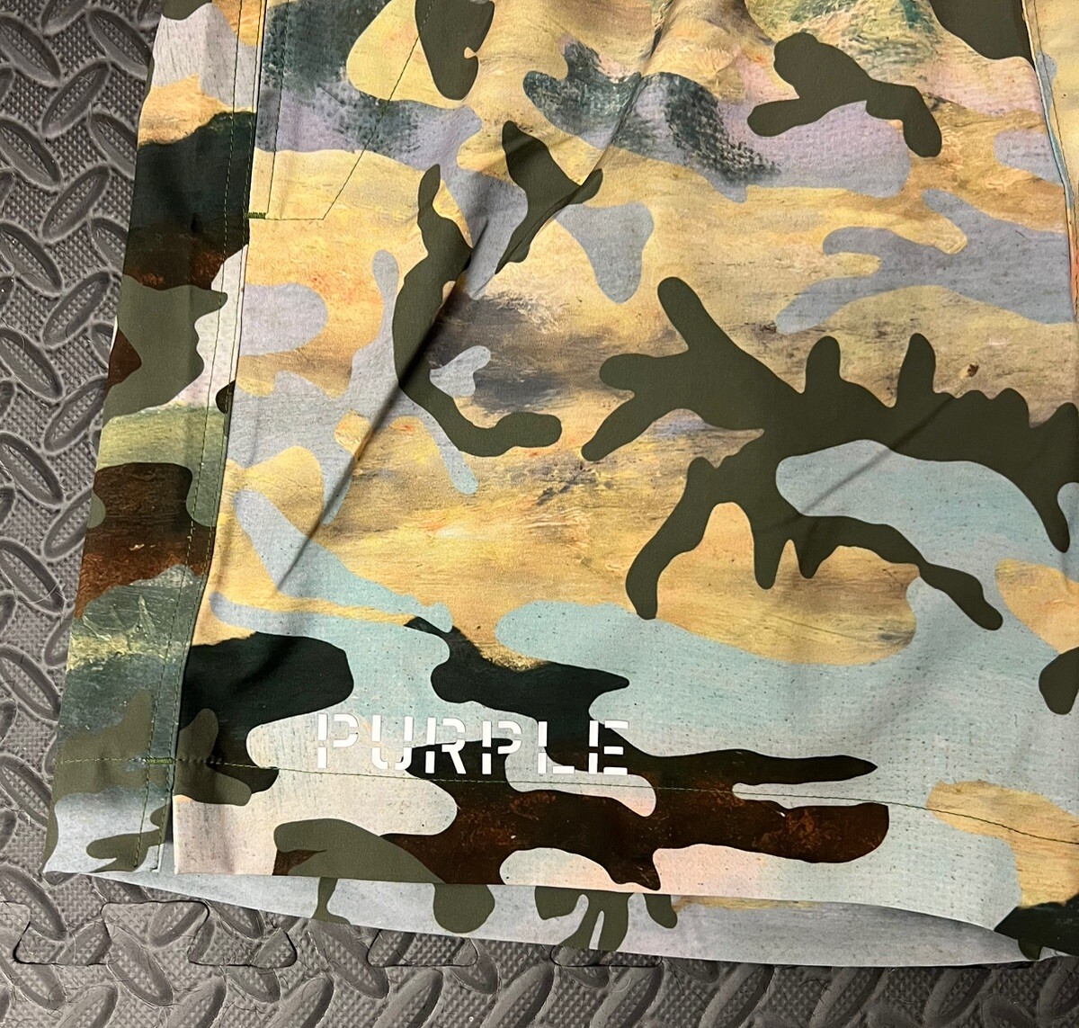 PURPLE BRAND Men's Green Blue Camo Microfiber Leisure Swim Shorts Size L 210.00