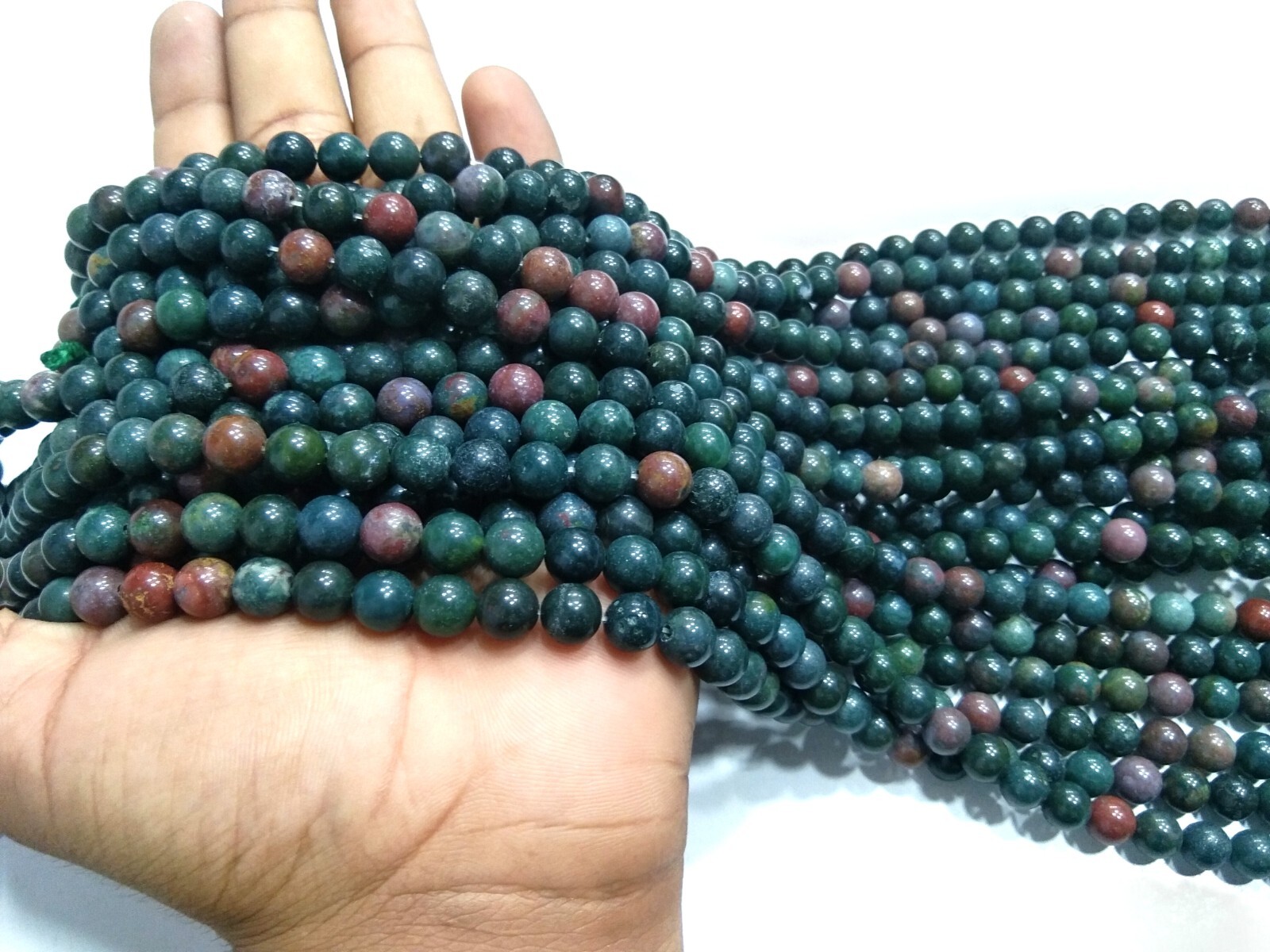 как выглядит Blood Stone Round Ball Smooth 8mm Gemstone Plain Beads 14"Inch 1 Strand фото