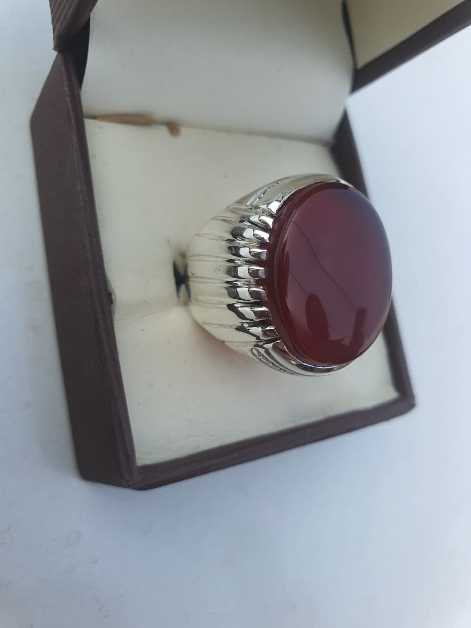 Red Yemeni Aqeeq 12 cts Ring in Sterling 925 Silver for Men
