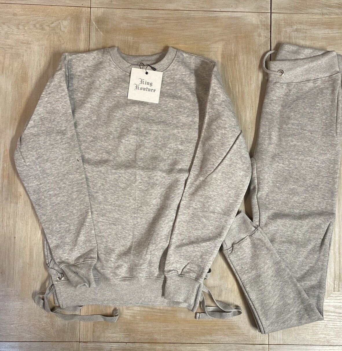 как выглядит Mens Tracksuit Grey XL RRP 60 King Kouture Sweatshirt Joggers Set Fitted Lace фото