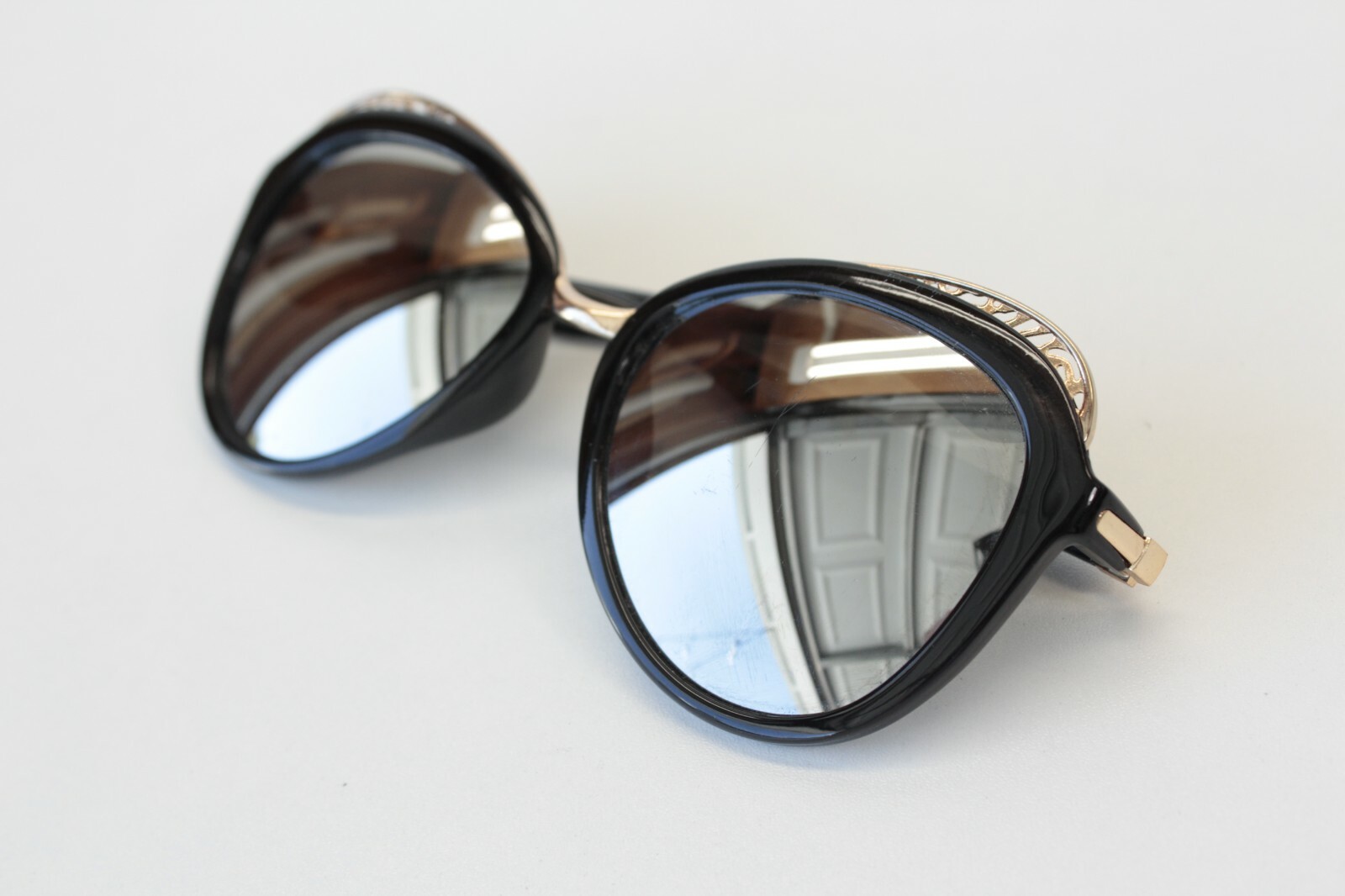 Vintage Cat Eye Sunglasses Black Gold Reflective Lens FAST SHIPPING
