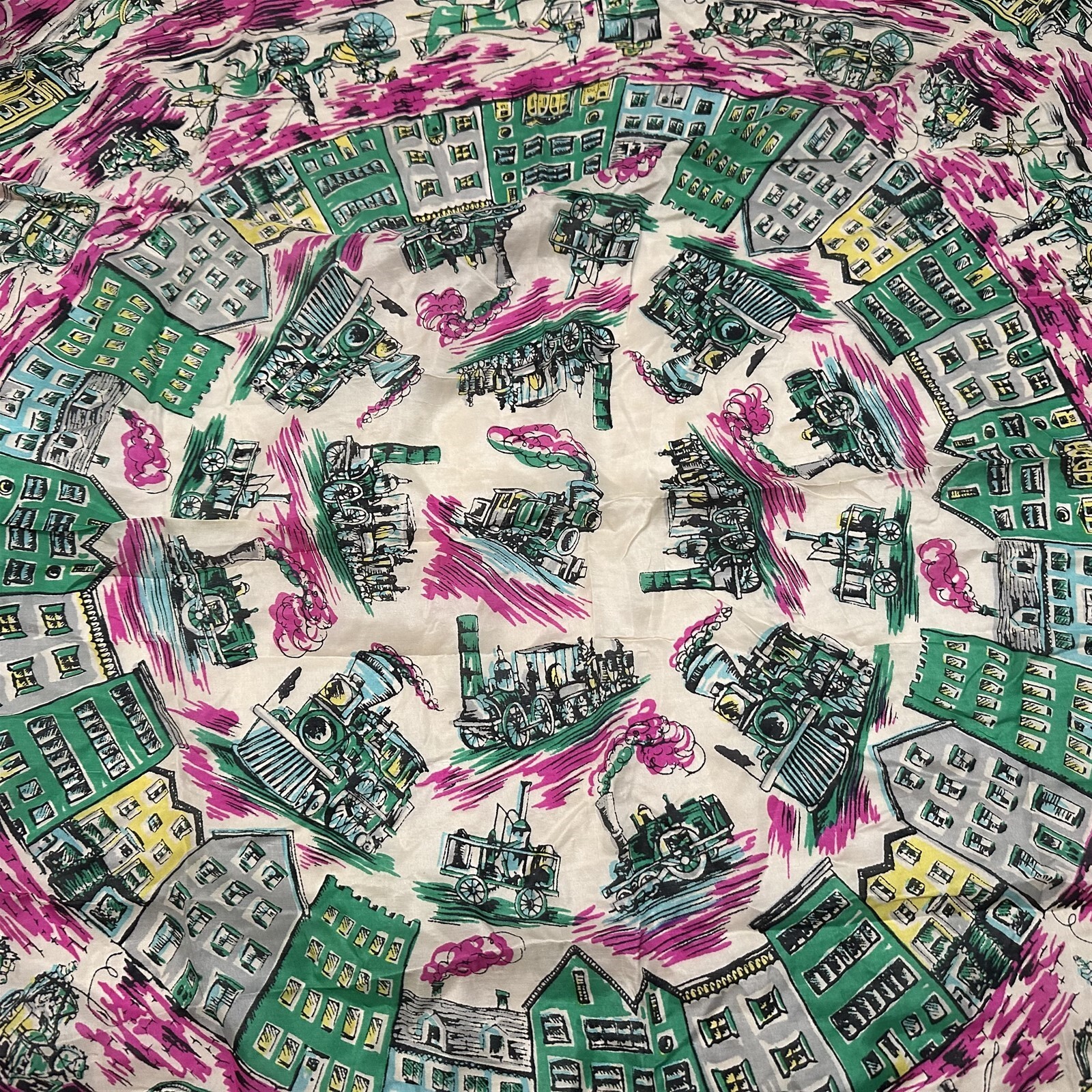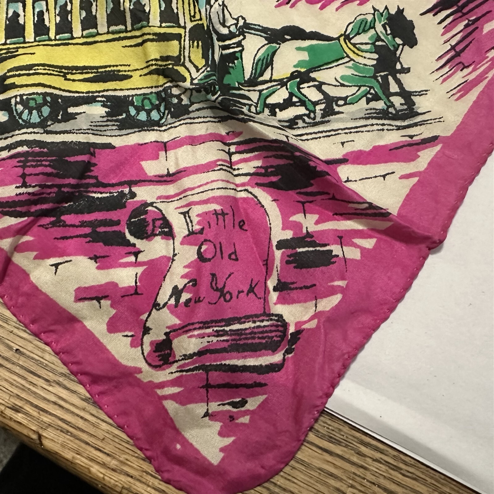 как выглядит LITTLE OLD NEW YORK VINTAGE SILK SCARF W TROLLEYS/HORSE-DRAWN CARRIAGES/HOUSES фото