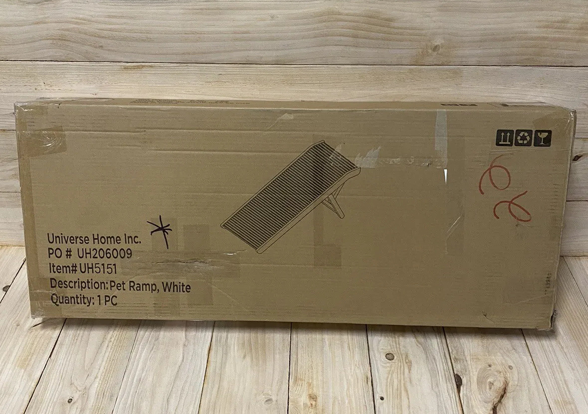 как выглядит Foldable Wooden Pet Ramp with Adjustable Height Dog Ramp, White фото