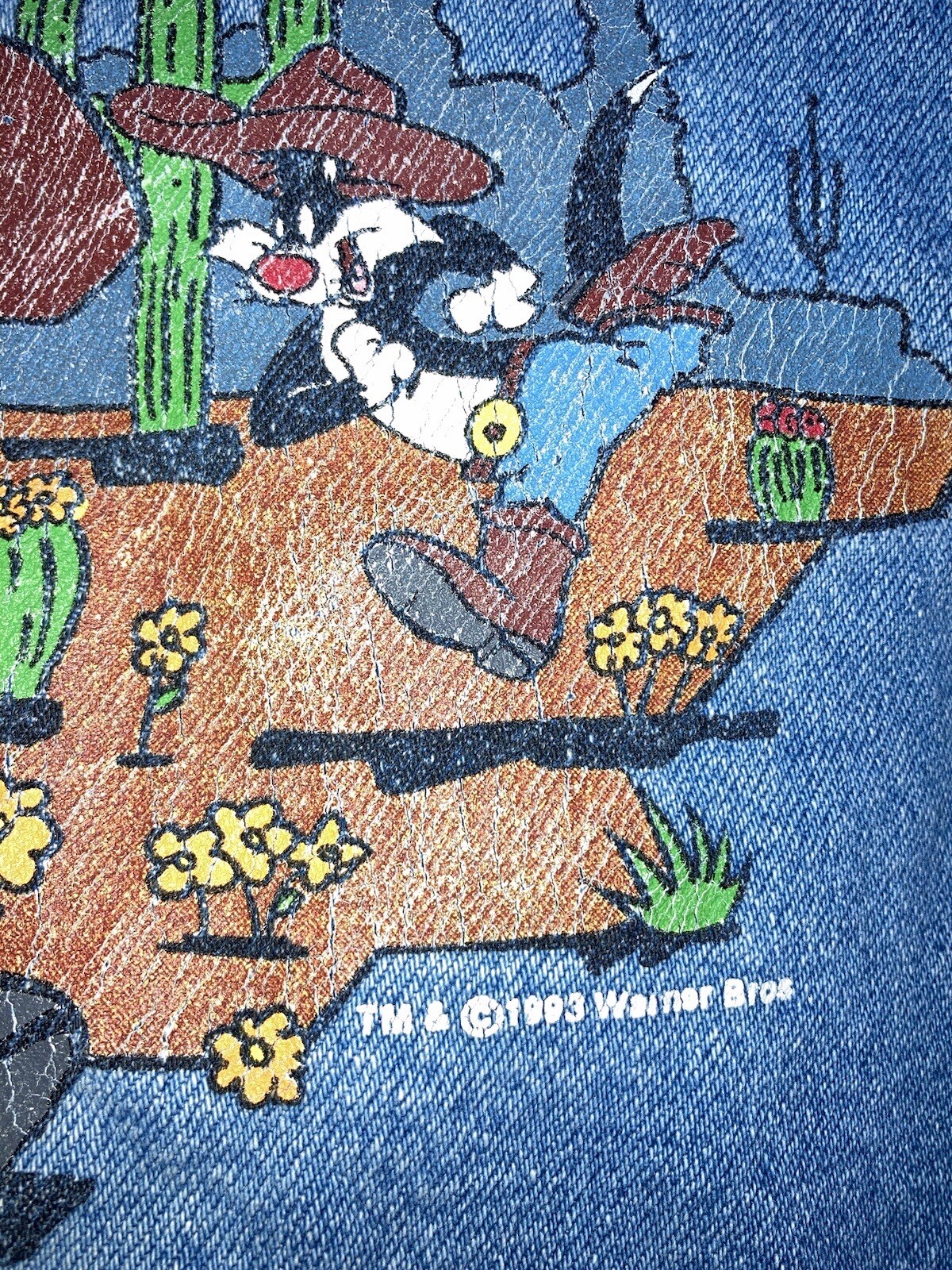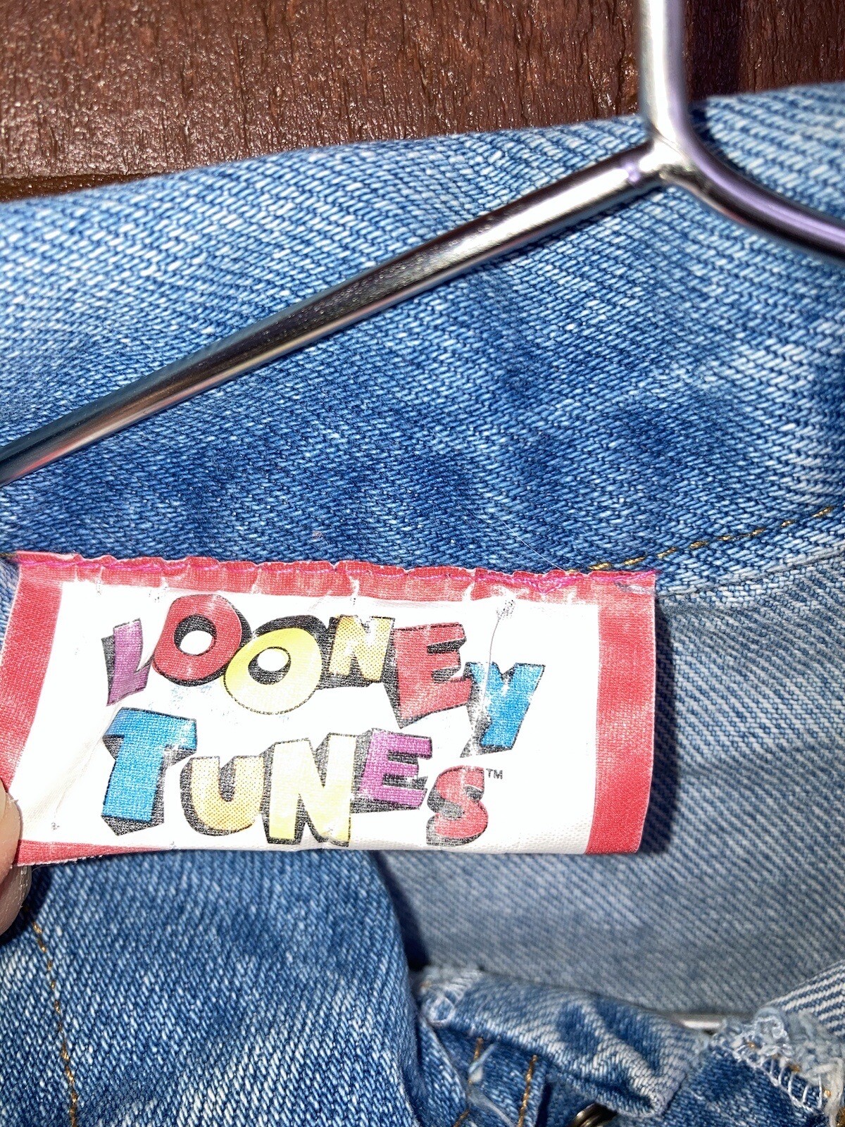 Vintage 90s Looney Tunes Kids Jean Jacket Warner Bros. Tweety Bugs Bunny sz 6X