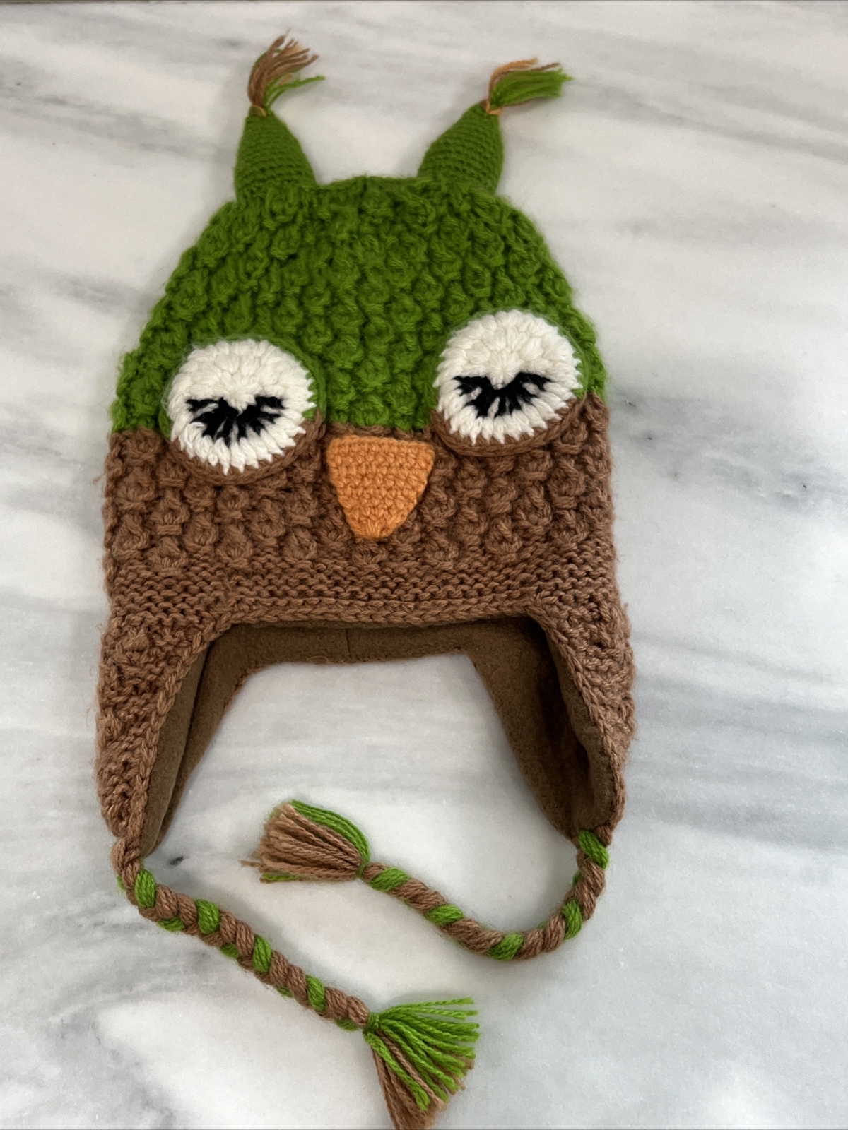 Andes Gifts Kids Knit Alpaca Hat OWL Green Brown