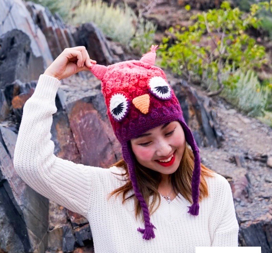 как выглядит Andes Gifts Kids Knit Alpaca Hat OWL Green Brown фото