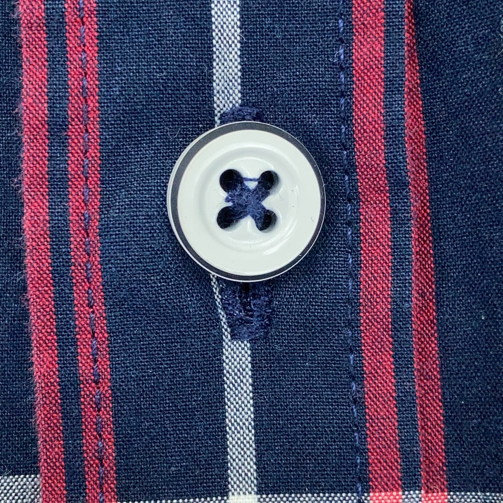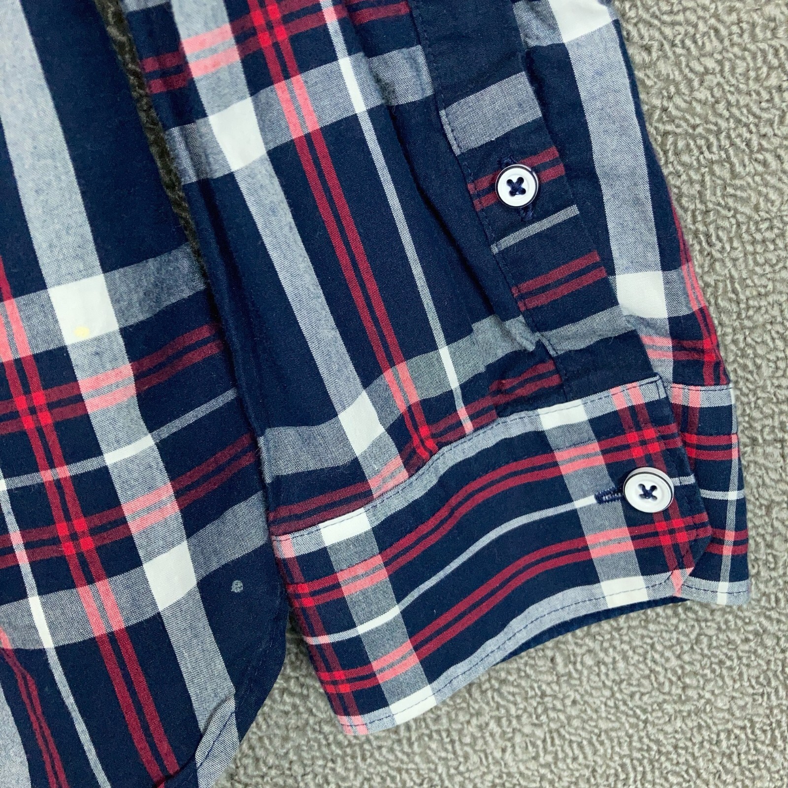 Express Button Up Shirt Mens XL 17-17.5 Fitted Long Sleeve Blue Red White Plaid