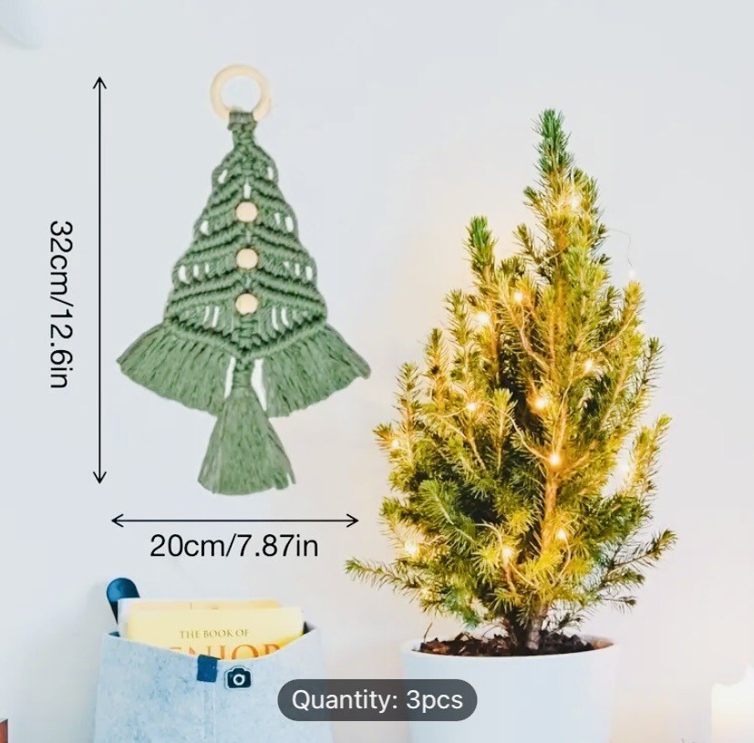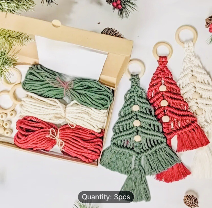 как выглядит MACRAME CHRISTMAS TREE HOLIDAY CRAFT KIT MAKES 3 TREES NEW IN BOX фото