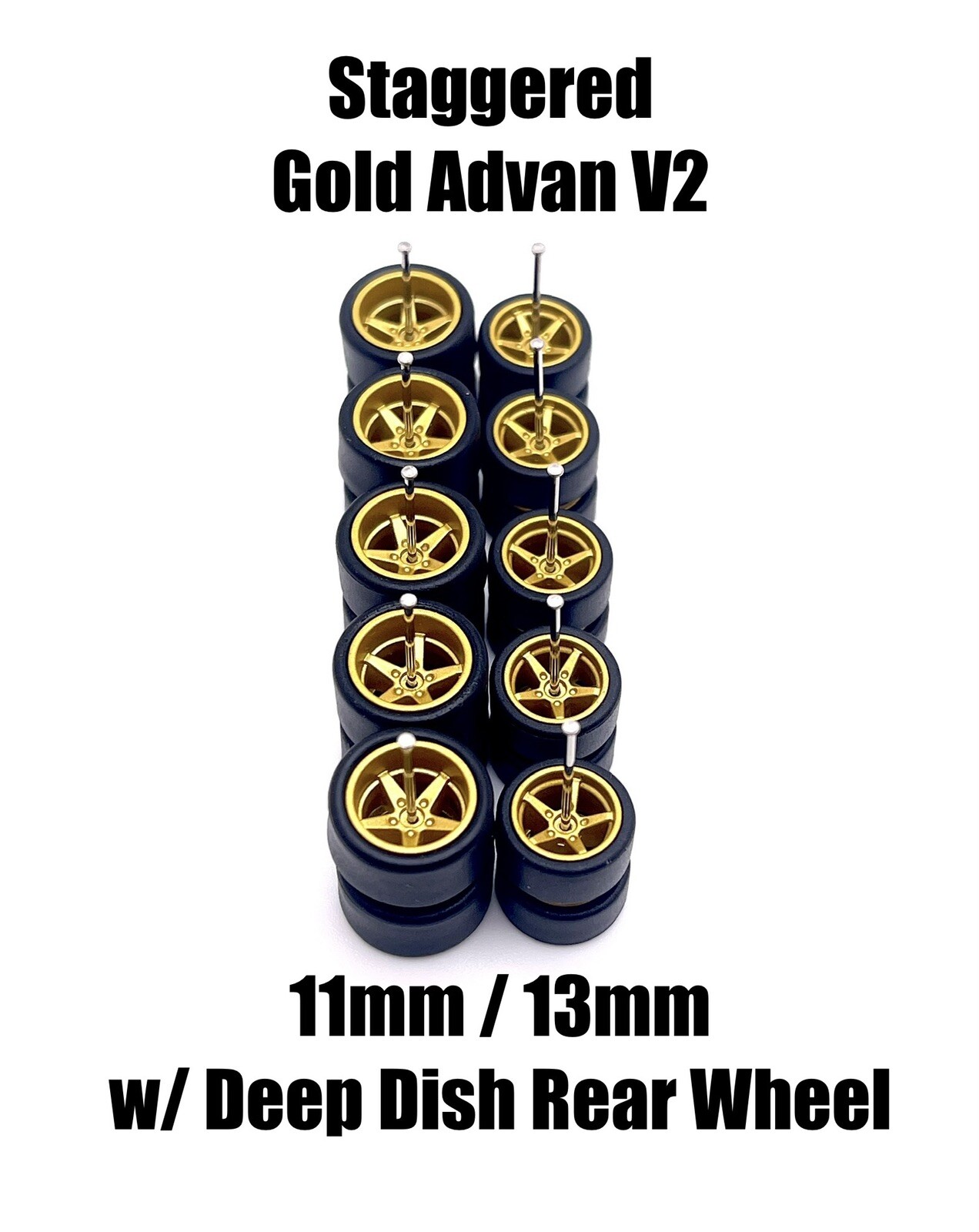 5x Regular Gold Advan V2 11/13mm Wheels Rubber Tires for 1/64 H0T Wheelz