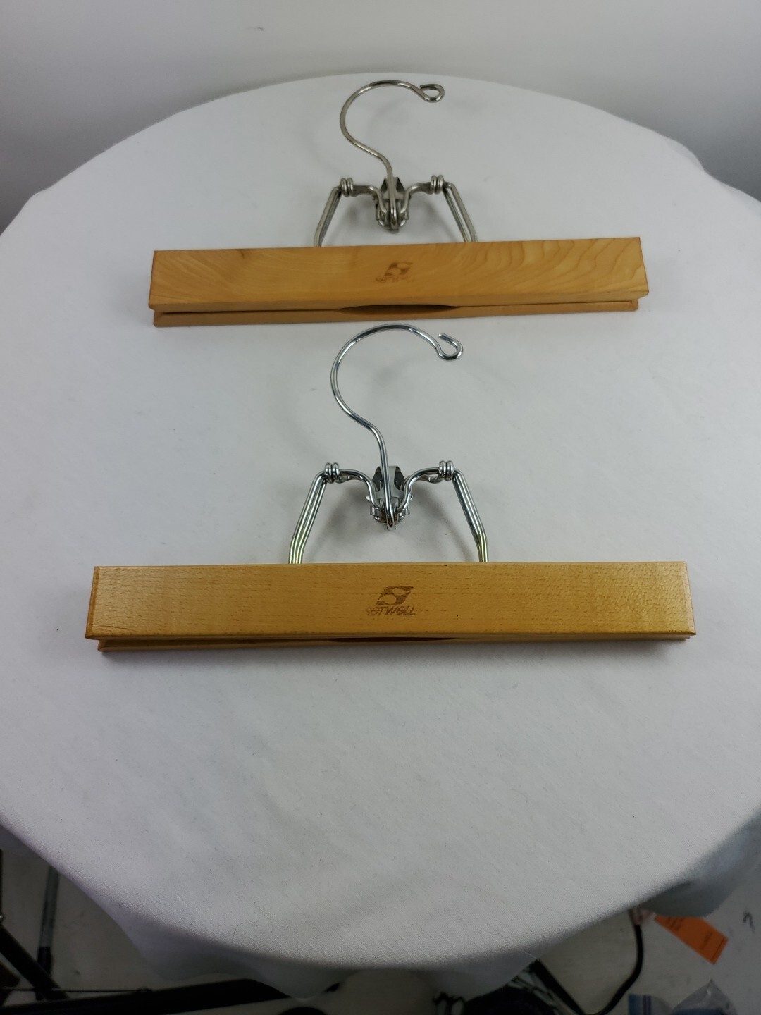 Vintage Set Of 2 Setwell Wooden Pant Skirt Clamp Hangers