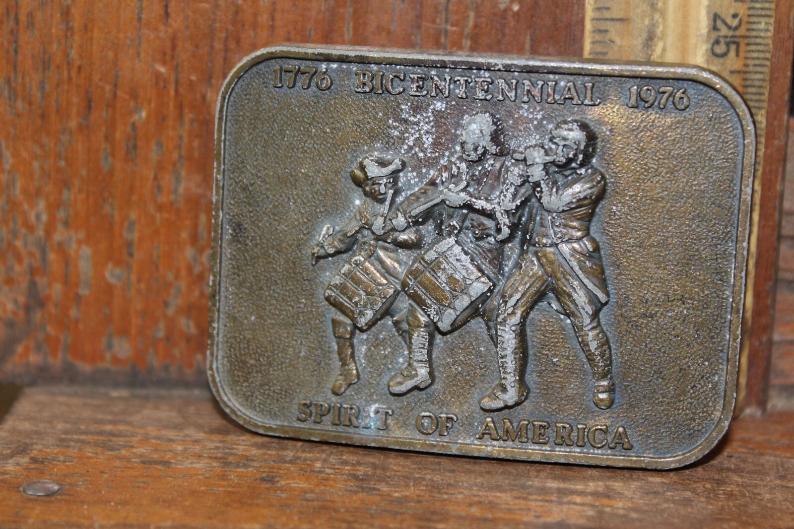 как выглядит Vintage Brass Finish Belt Buckle US Bicentennial 1776-1976 Spirit of America фото