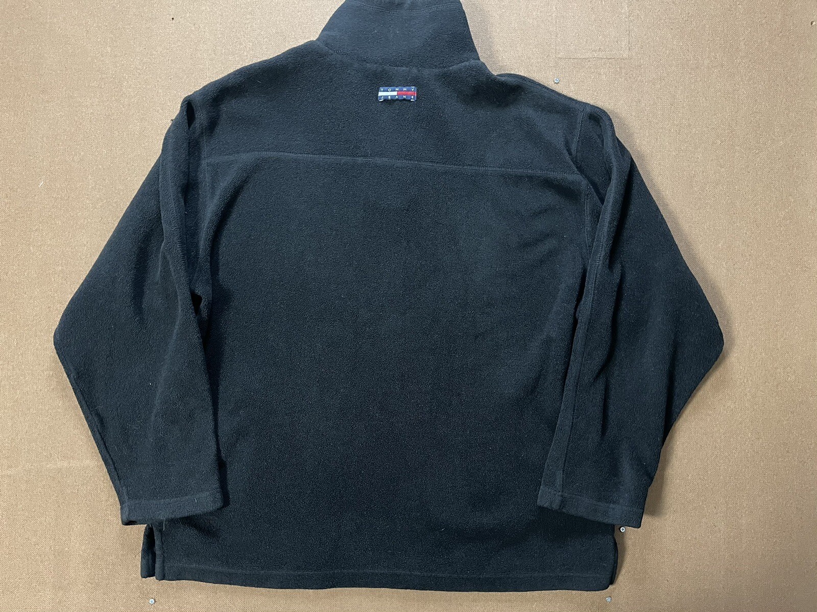 VTG 90 s-Y2K TOMMY Jeans 1/4 Zip Large Pullover Fleece Sweater Black Patch Logo