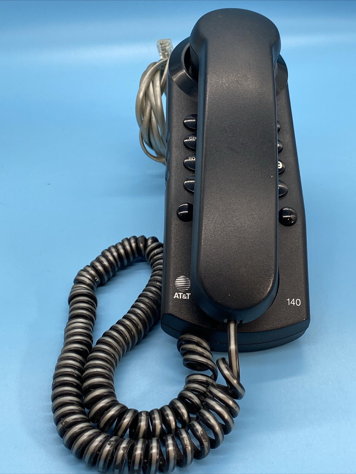 AT T 140 Slim Line Telephone /Corded Phone Line /Powered Black Design /Vintage