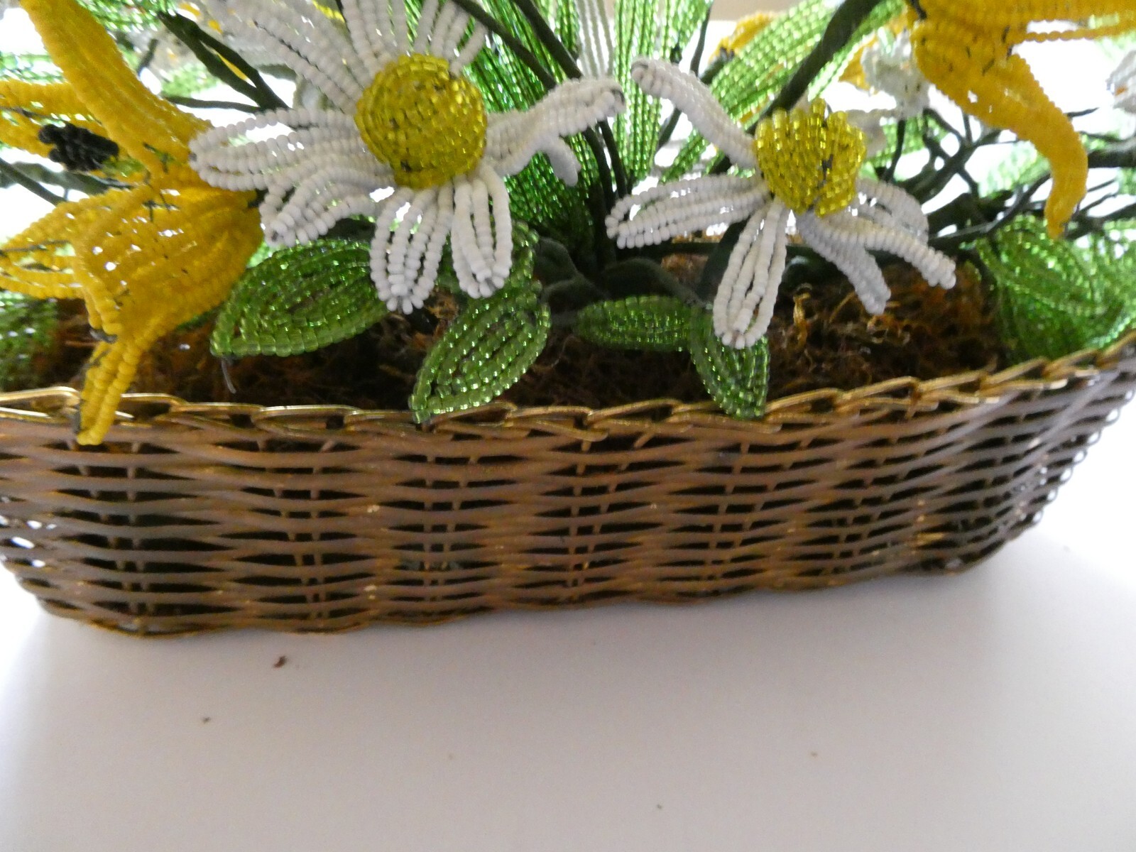 как выглядит Vintage-One of a Kind- French Glass Beaded Flower Bouquet In Basket-Preowned. фото