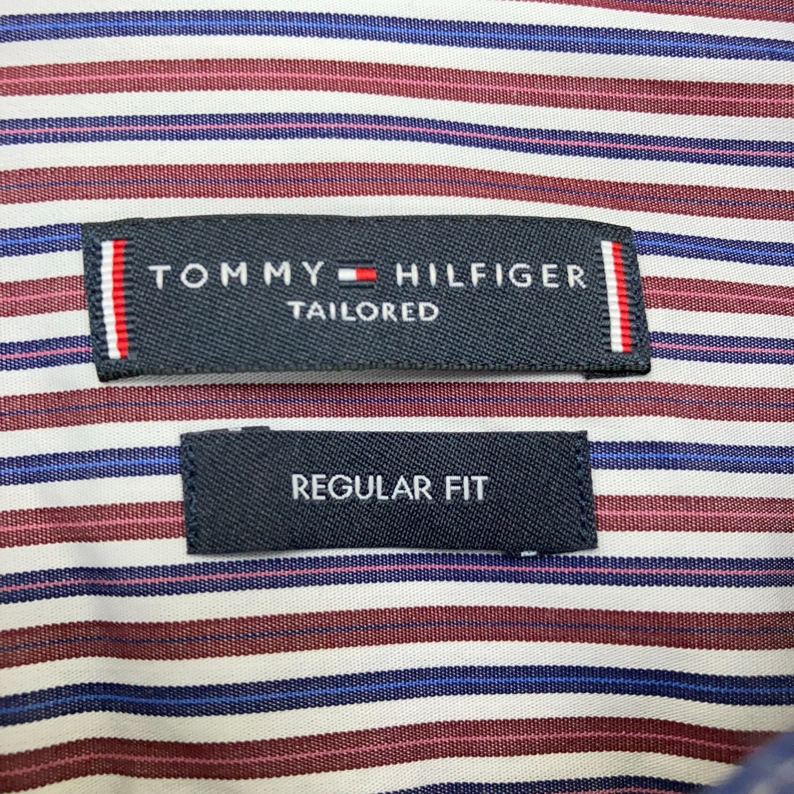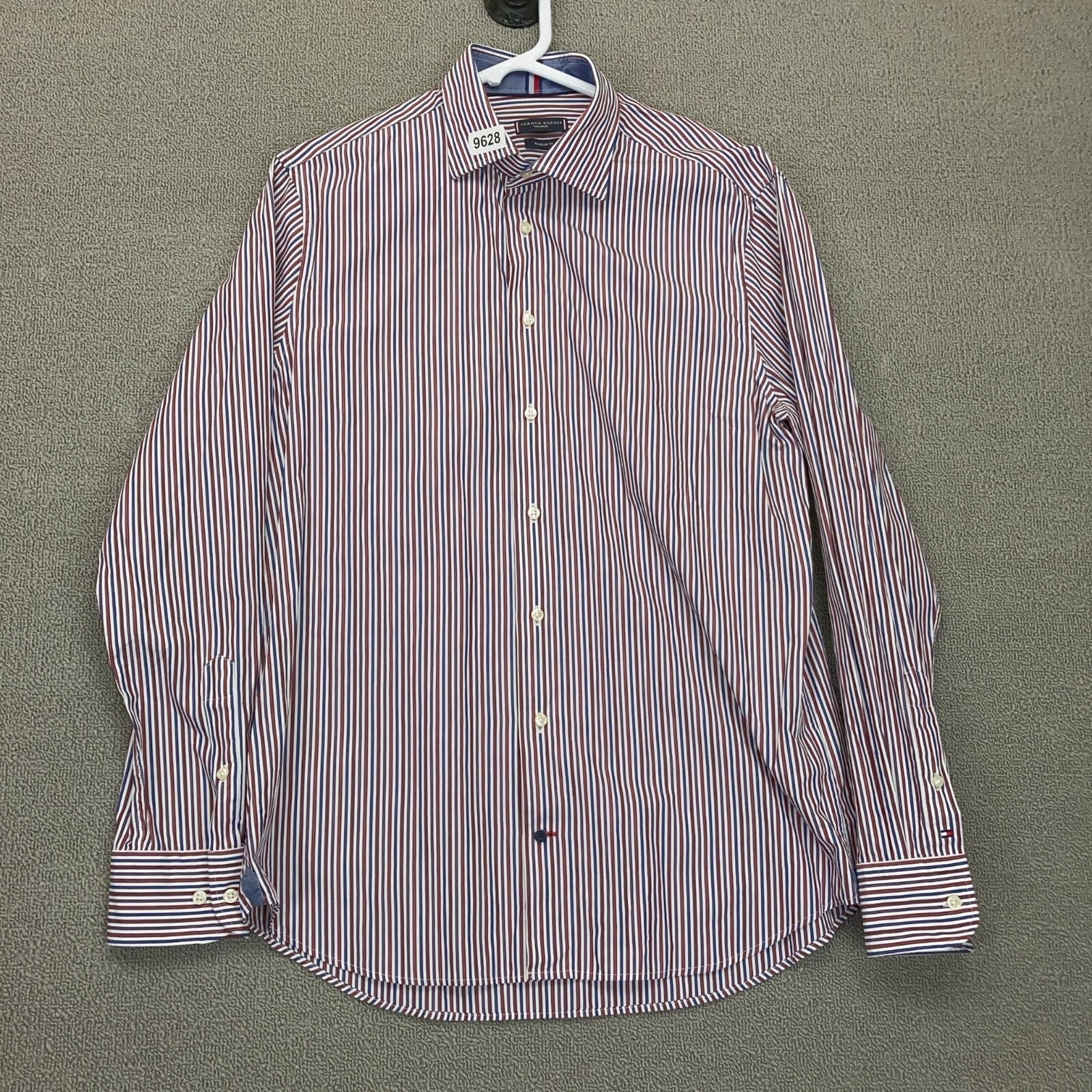 Tommy Hilfiger Shirt Mens Size 16 Red Blue Stripe Button Up Long Sleeve Cotton