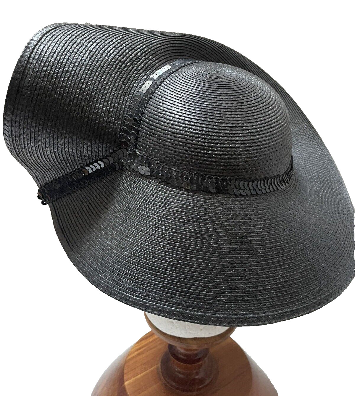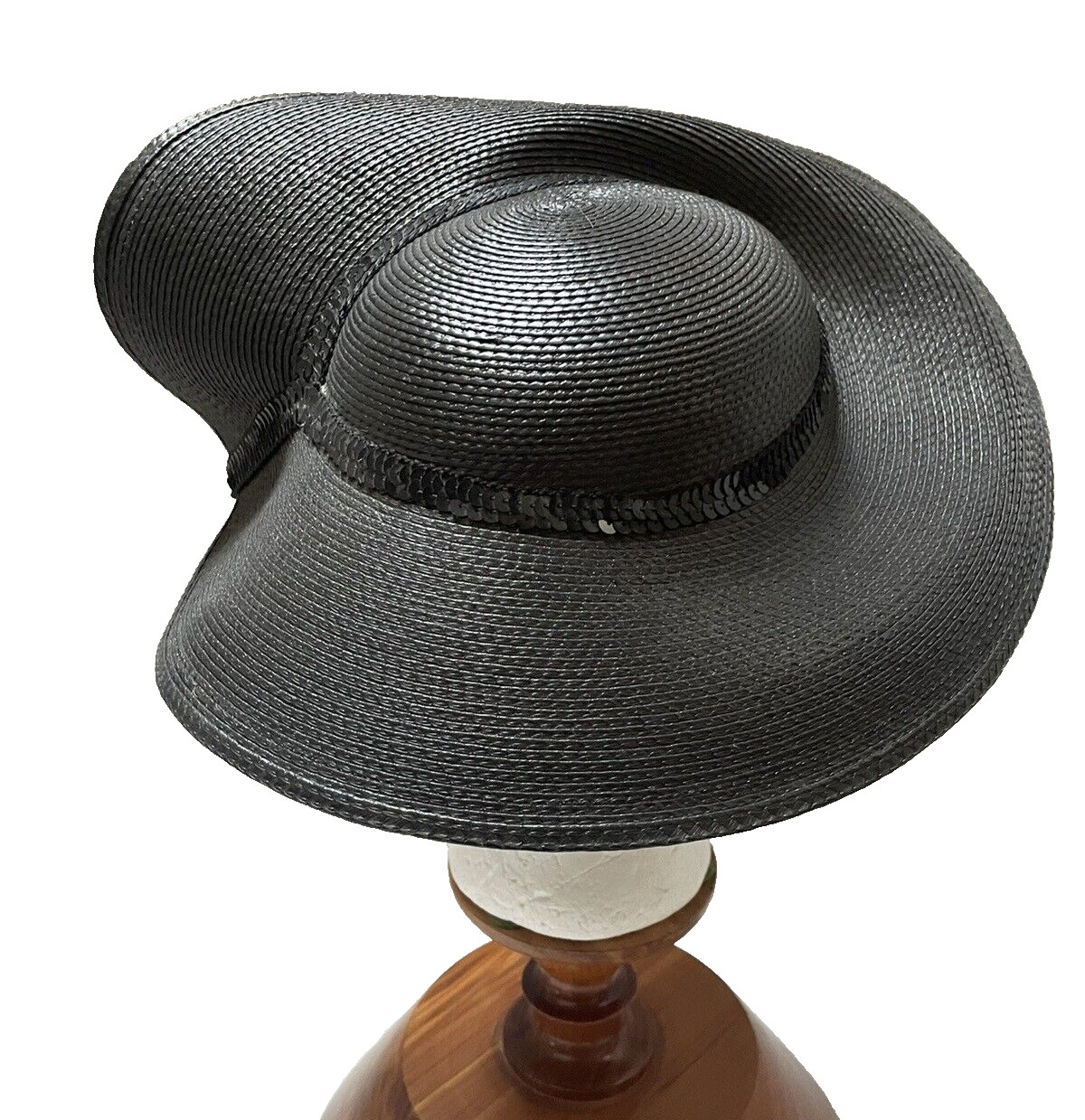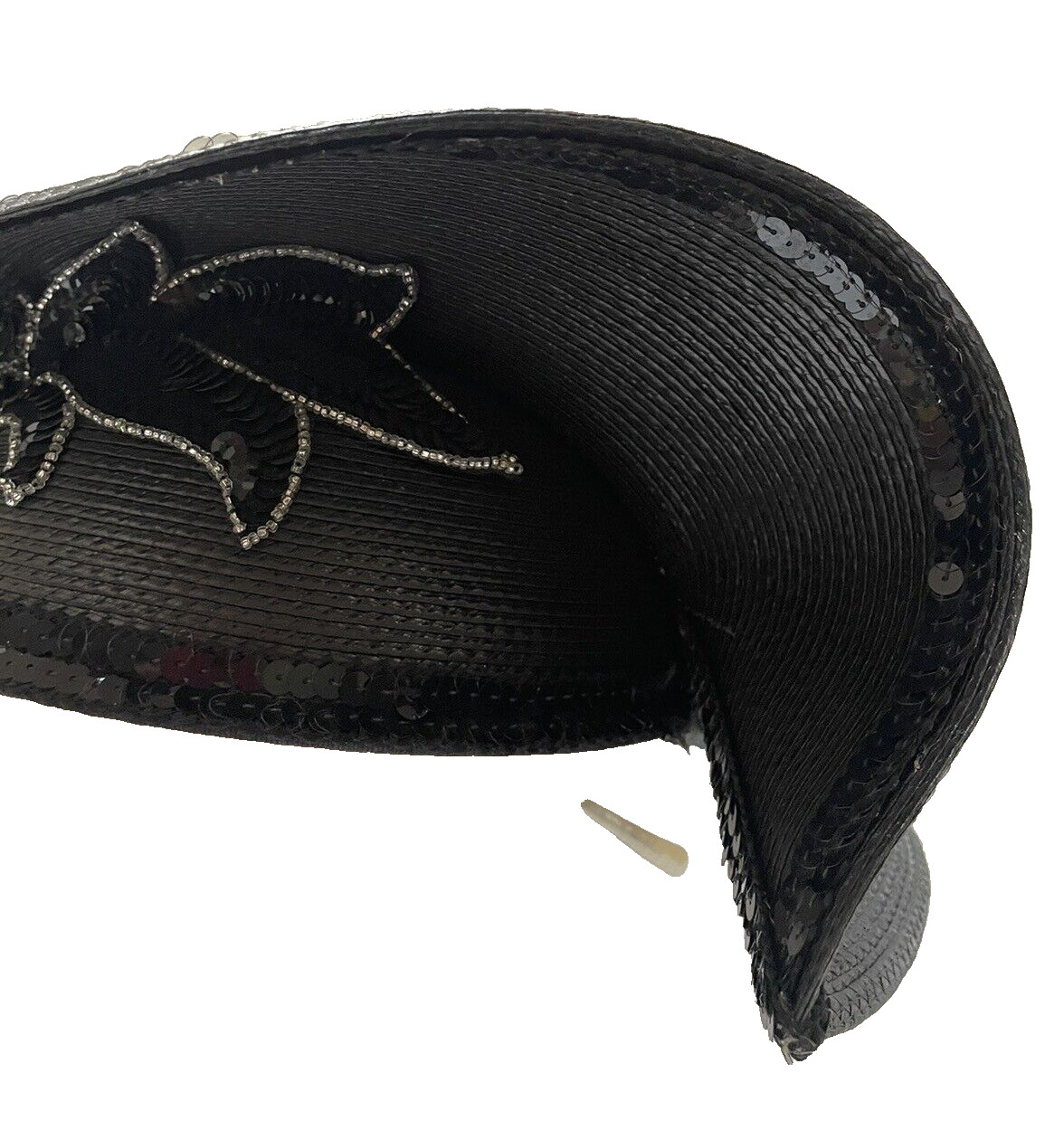 Vintage Black Swirl Hat Sequin Edge Flower Church Kentucky Derby Elegant Easter