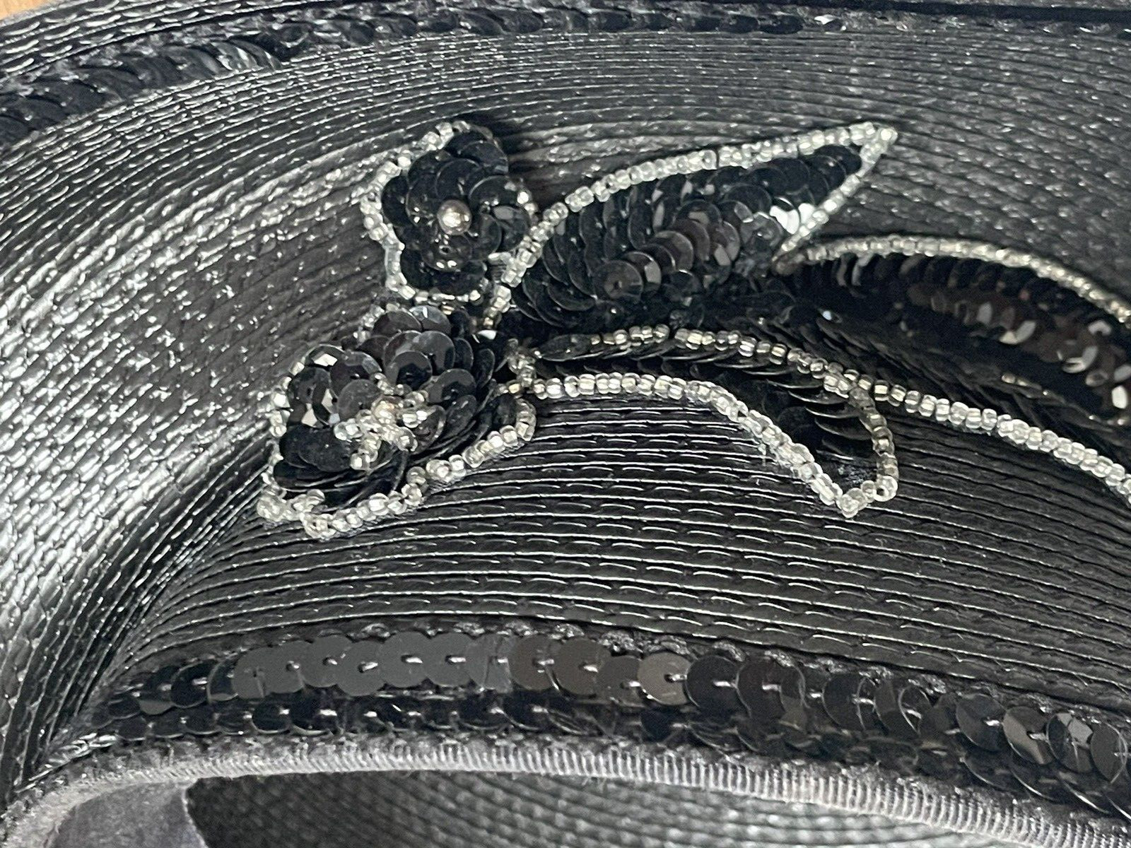 как выглядит Vintage Black Swirl Hat Sequin Edge Flower Church Kentucky Derby Elegant Easter фото