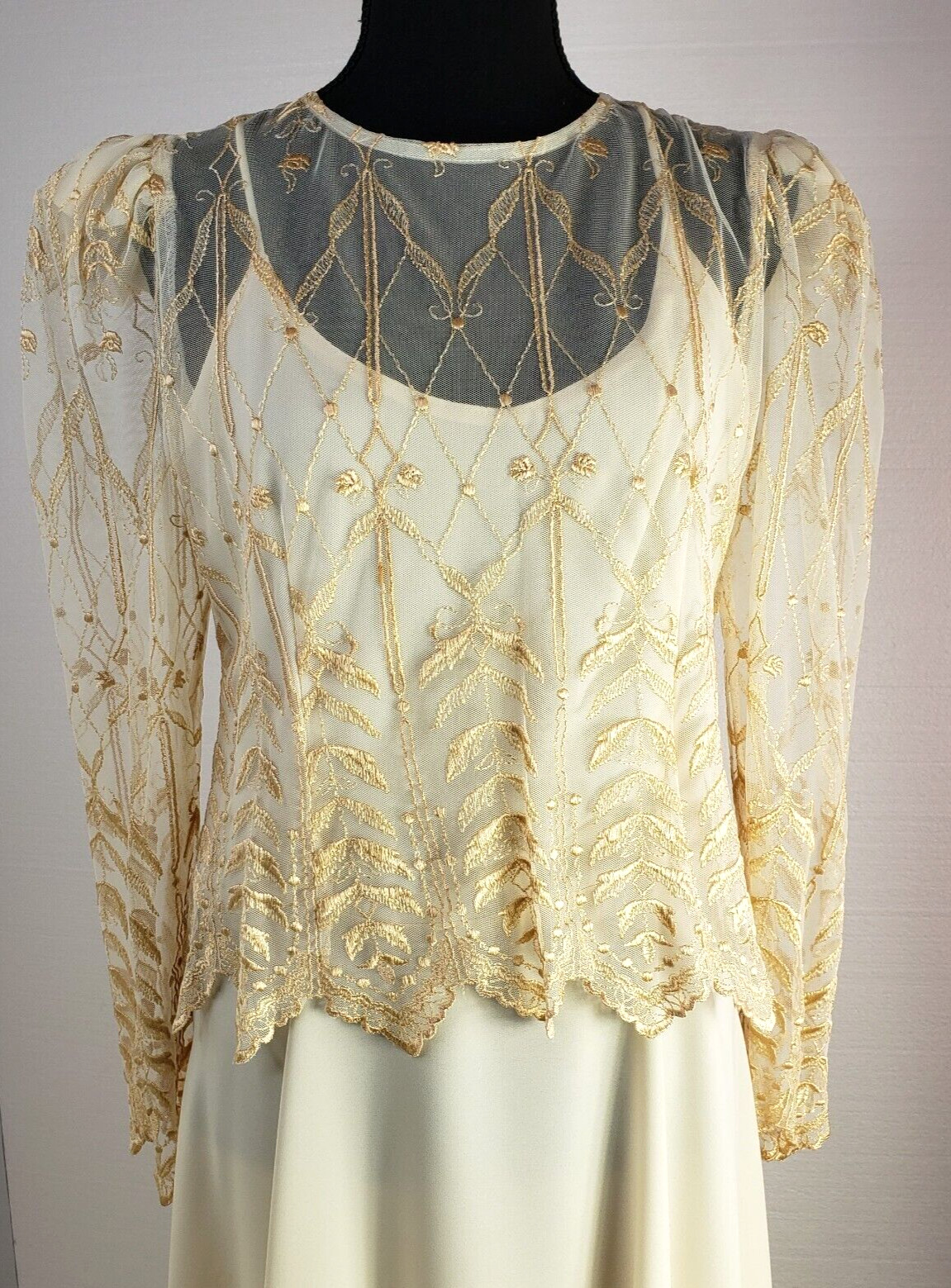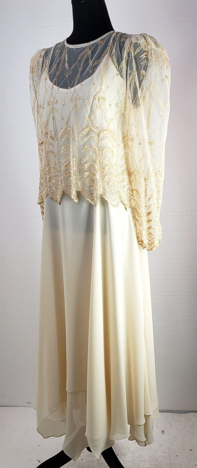 Vintage Cachet Bari Protas Gold Lace Cream Party Wedding Formal Dress Size 11/12
