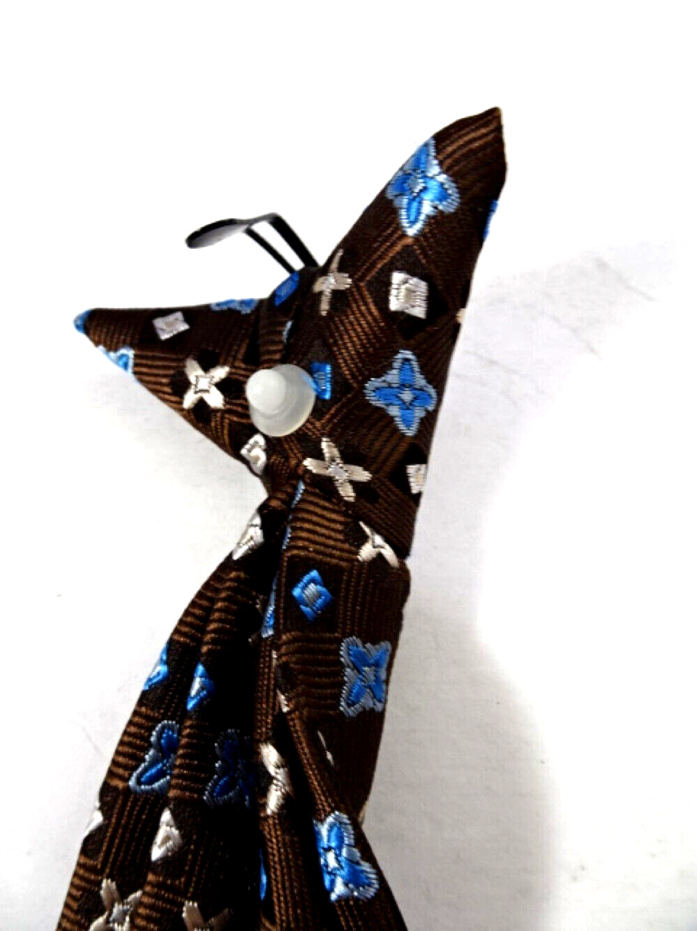 Boys Toddler CLIP-ON TIE Blue/Brown Woven Design 9