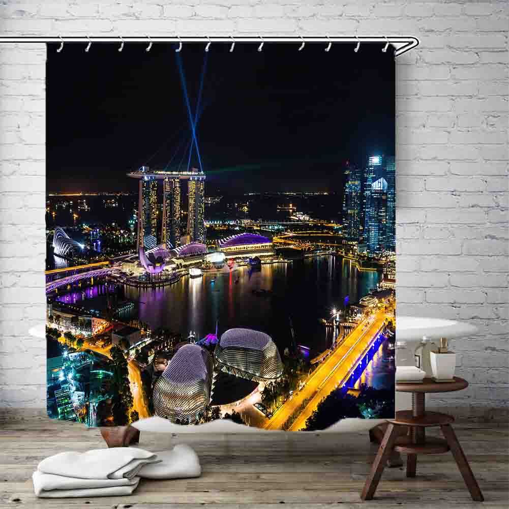 Bustling Place Waterproof Bath Polyester Shower Curtain Liner Water Resistant