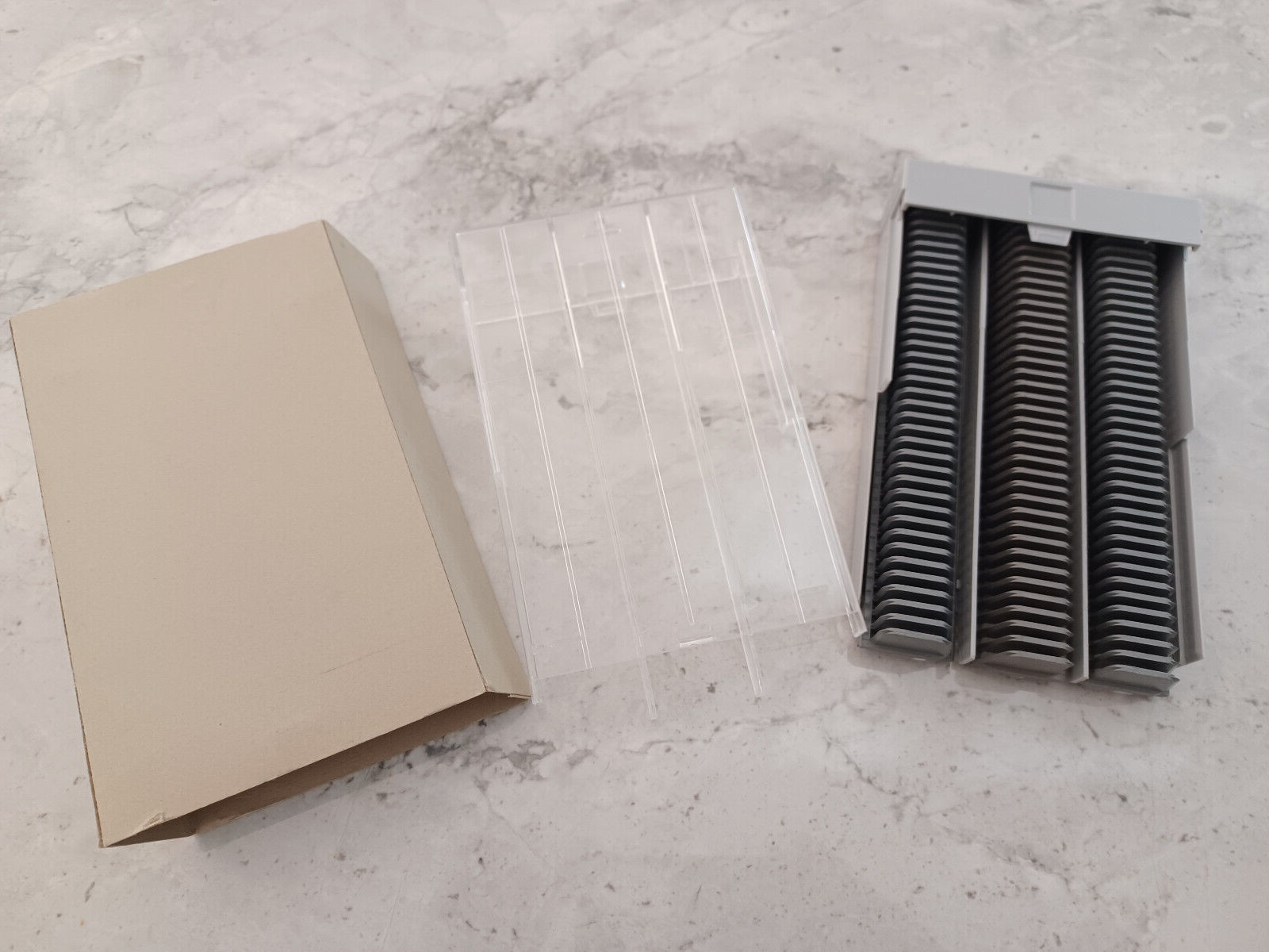 как выглядит Vintage Minox projector slide tray box with three Minox slide trays фото