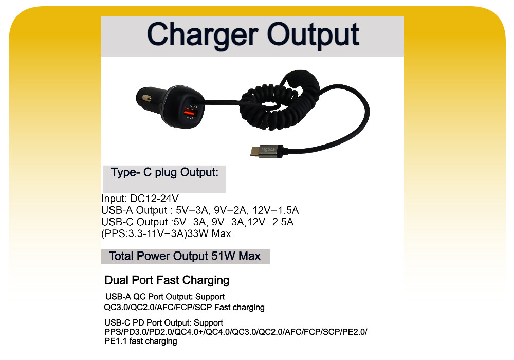 Mgbca Sonic Fast USB-C Car Charger For Galaxy S25/S24/S23 Coil Cable, 51w PD QC