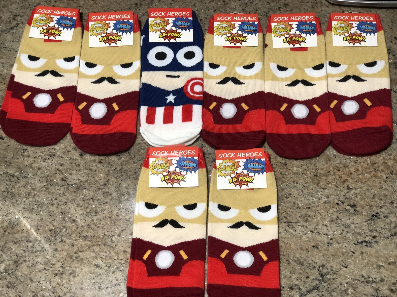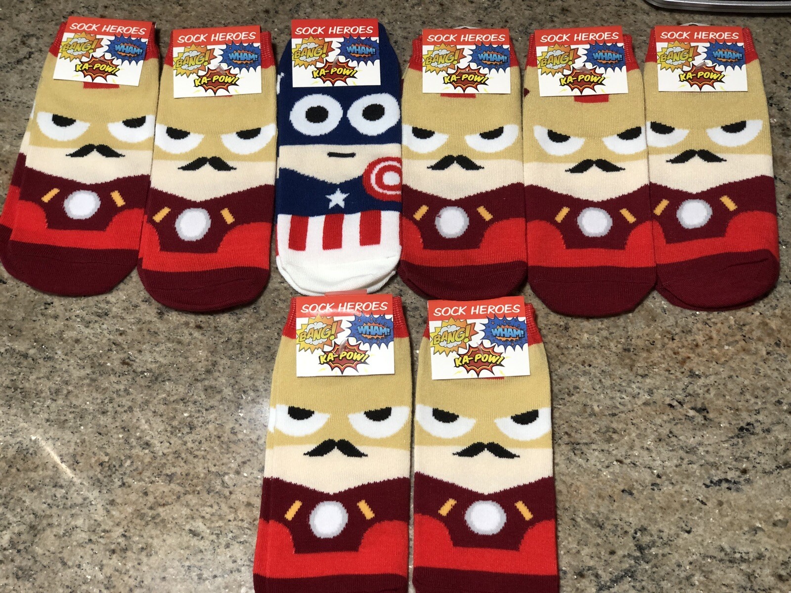 Sock Heroes Socks Marvel Comics Captain America Iron Man 8 Pairs Ankle Socks