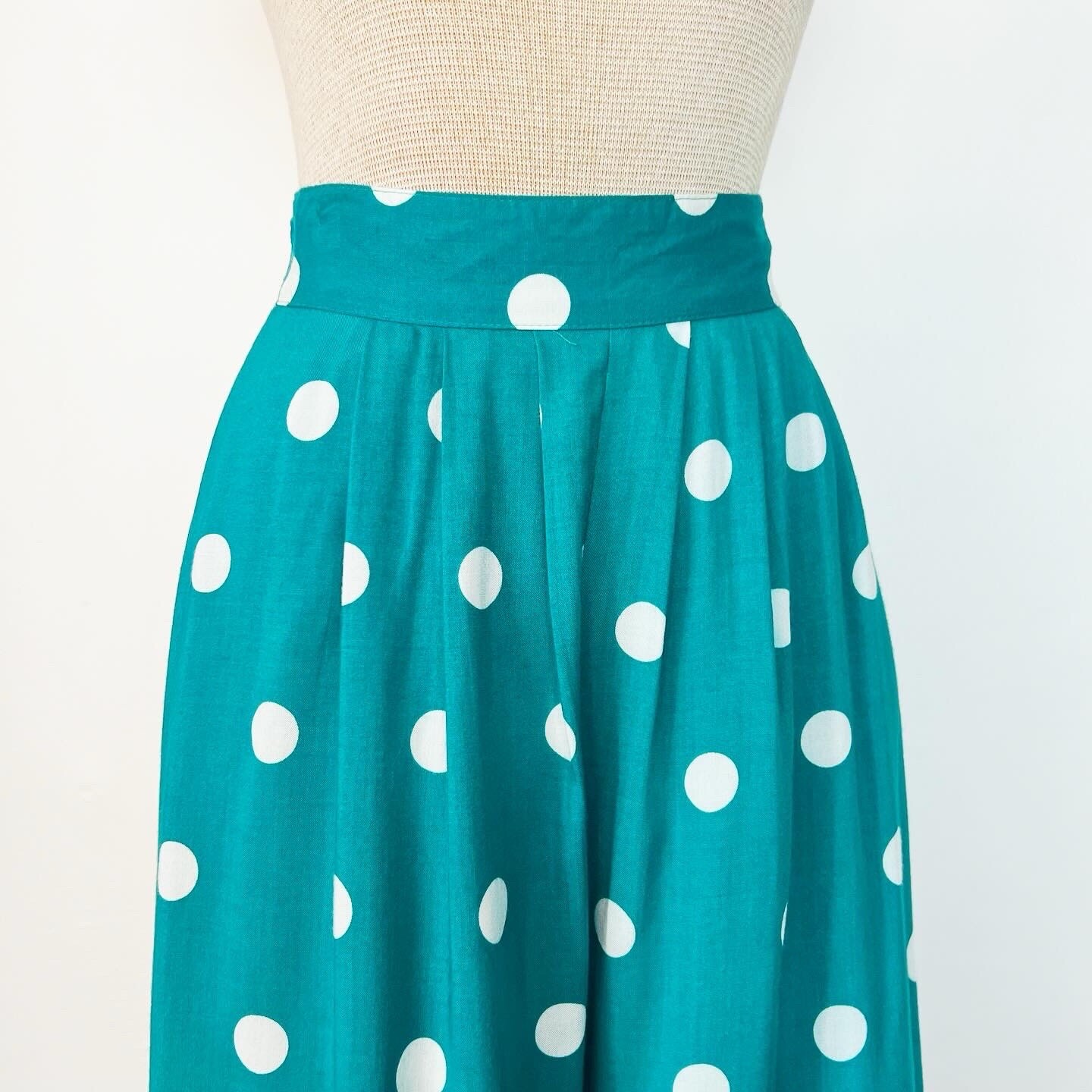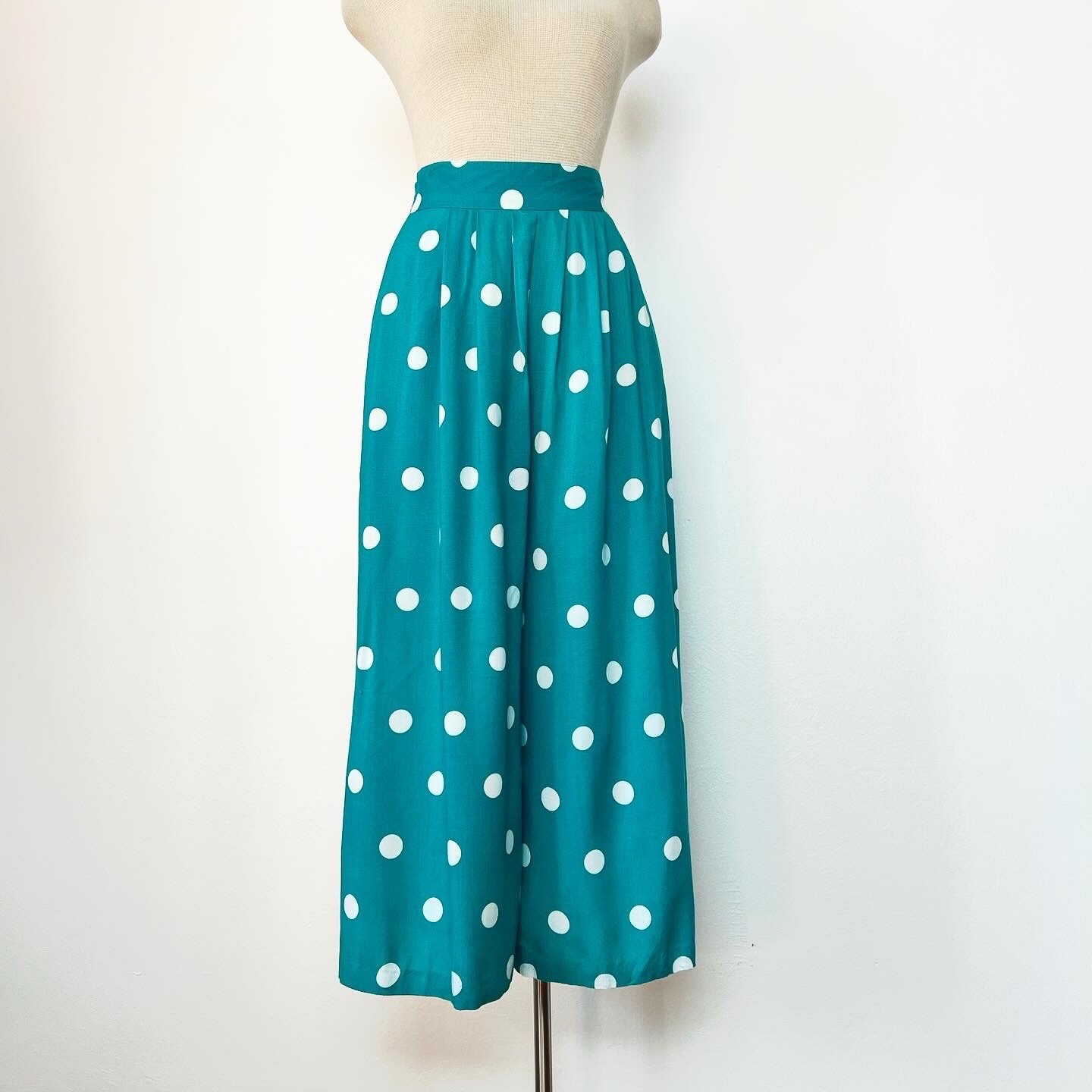 POLKA DOTS 80 s 80s Rayon Teal Vintage Leger Wide Leg Palazzo Gaucho Pants XS 25