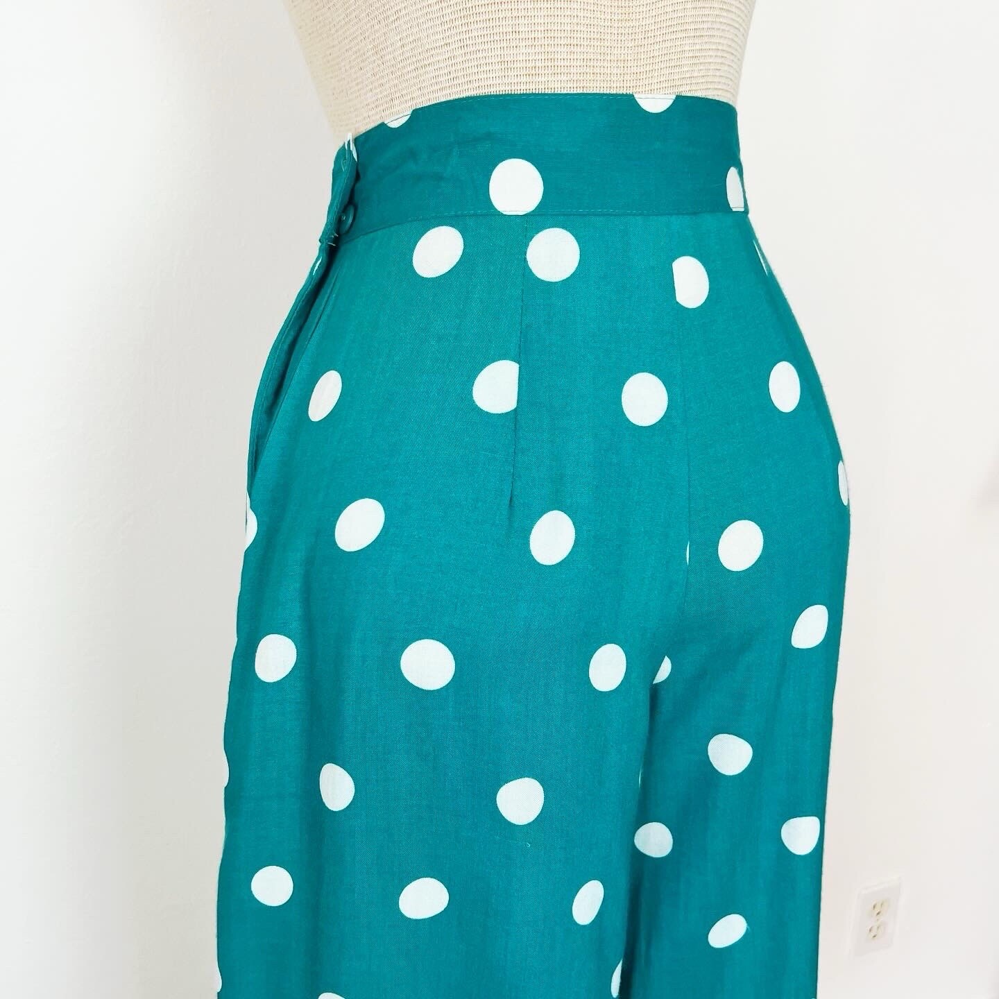 как выглядит POLKA DOTS 80 s 80s Rayon Teal Vintage Leger Wide Leg Palazzo Gaucho Pants XS 25 фото