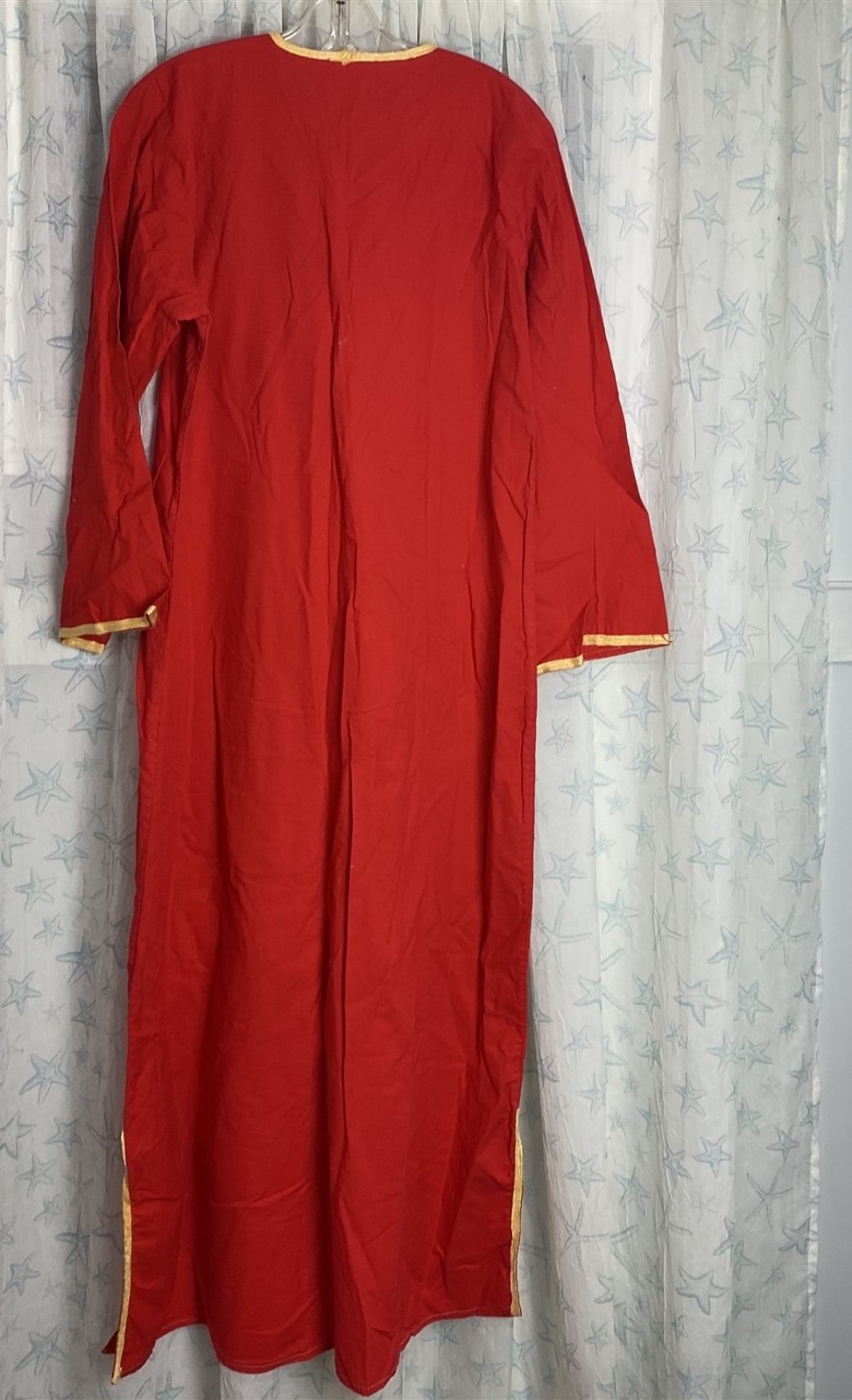 как выглядит Vintage Kaftan Loungewear Nightgown Womens Red Long Embellished Embroidered фото