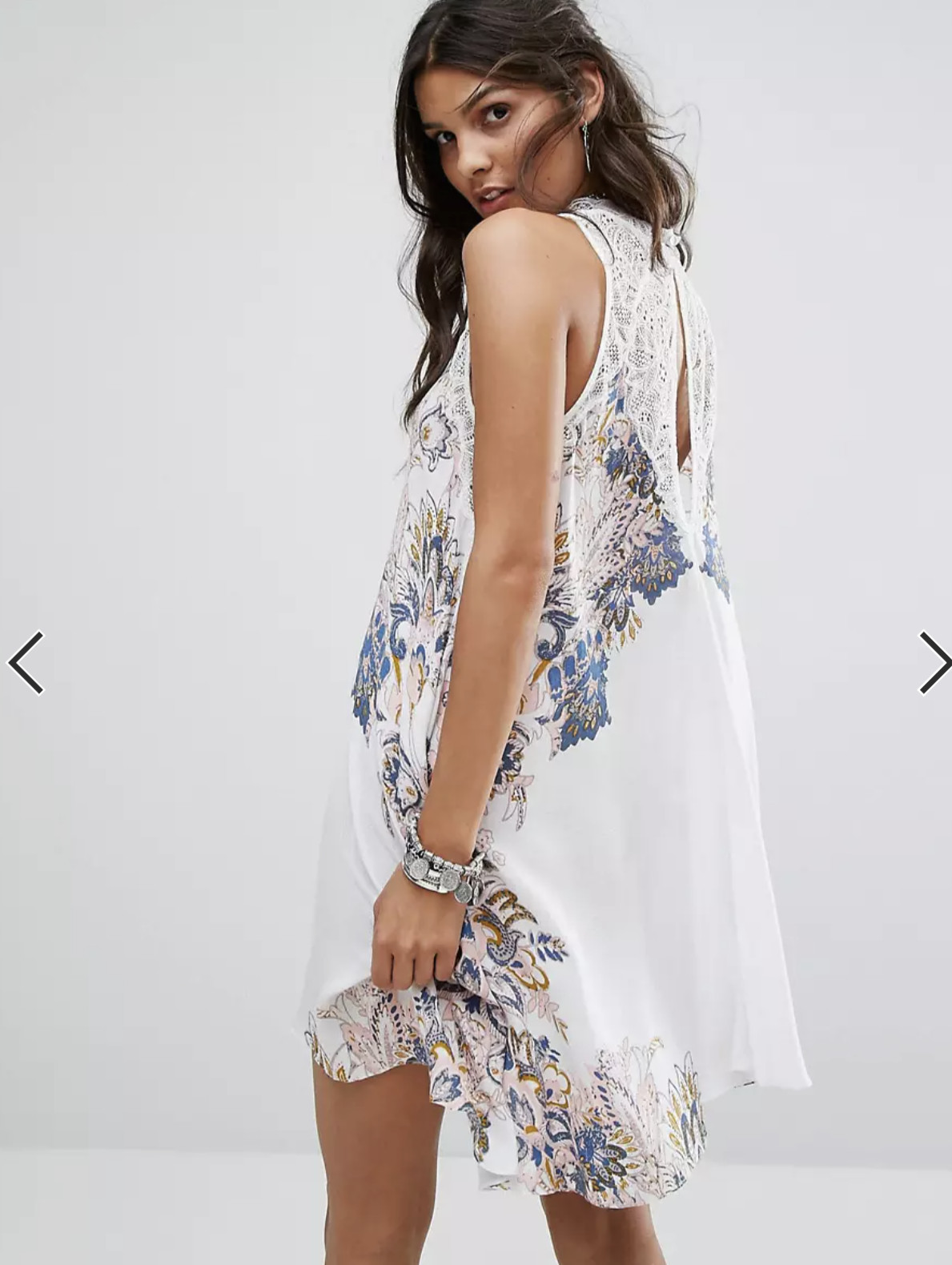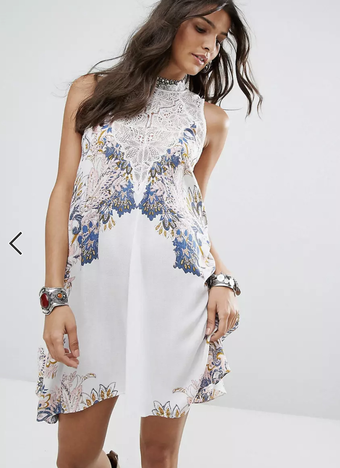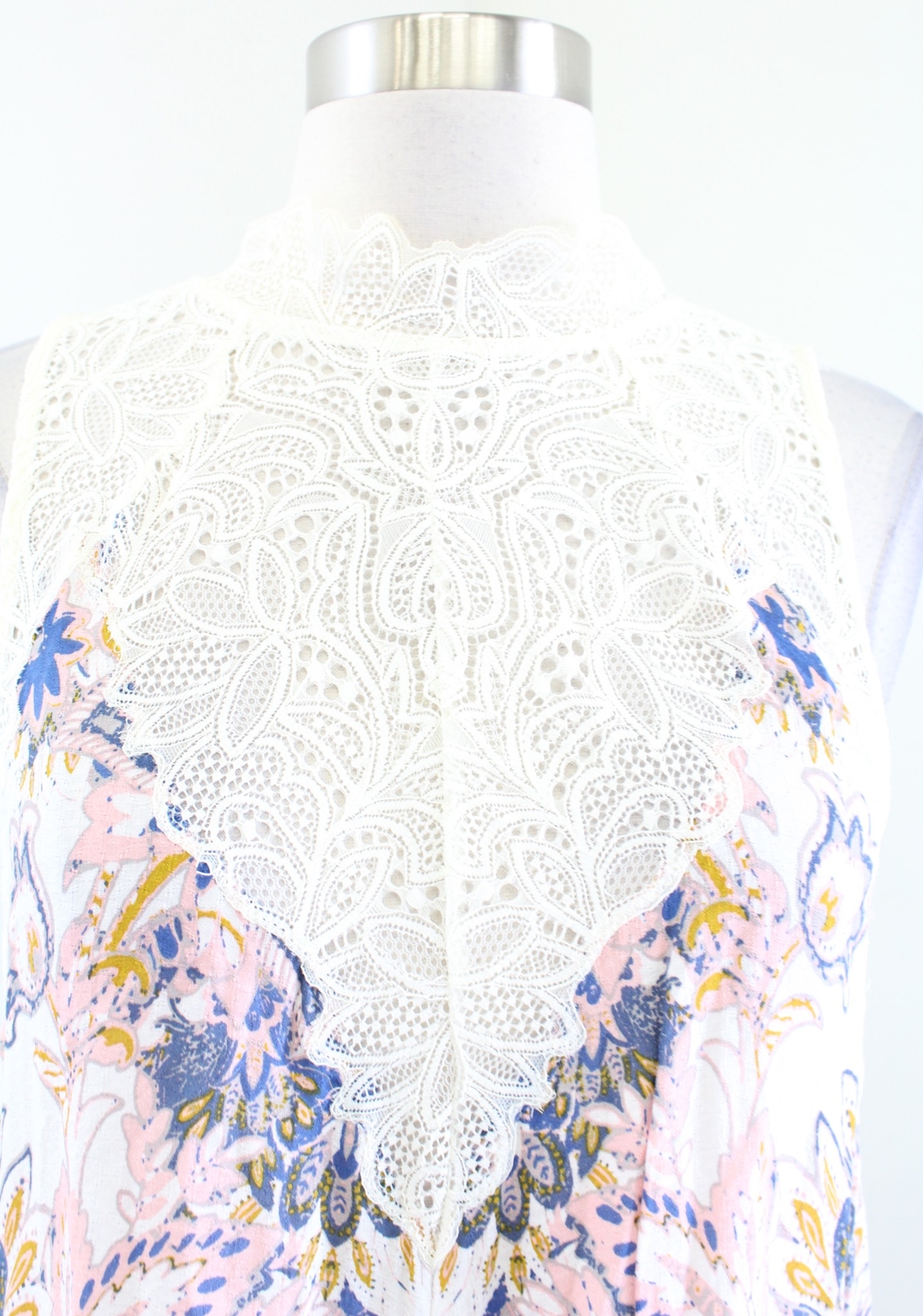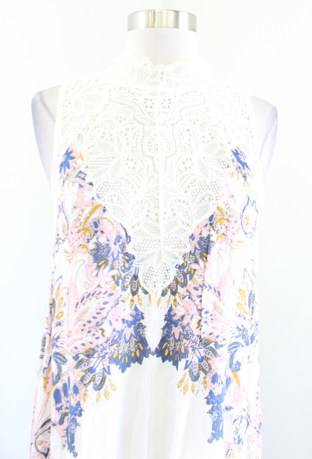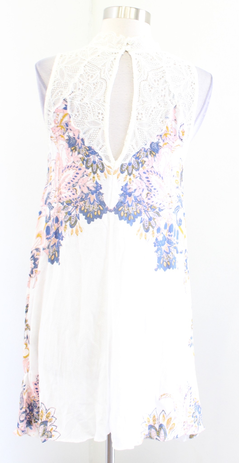 как выглядит Intimately Free People Marsha Ivory Printed Lace Mock Neck Slip Dress Size S фото
