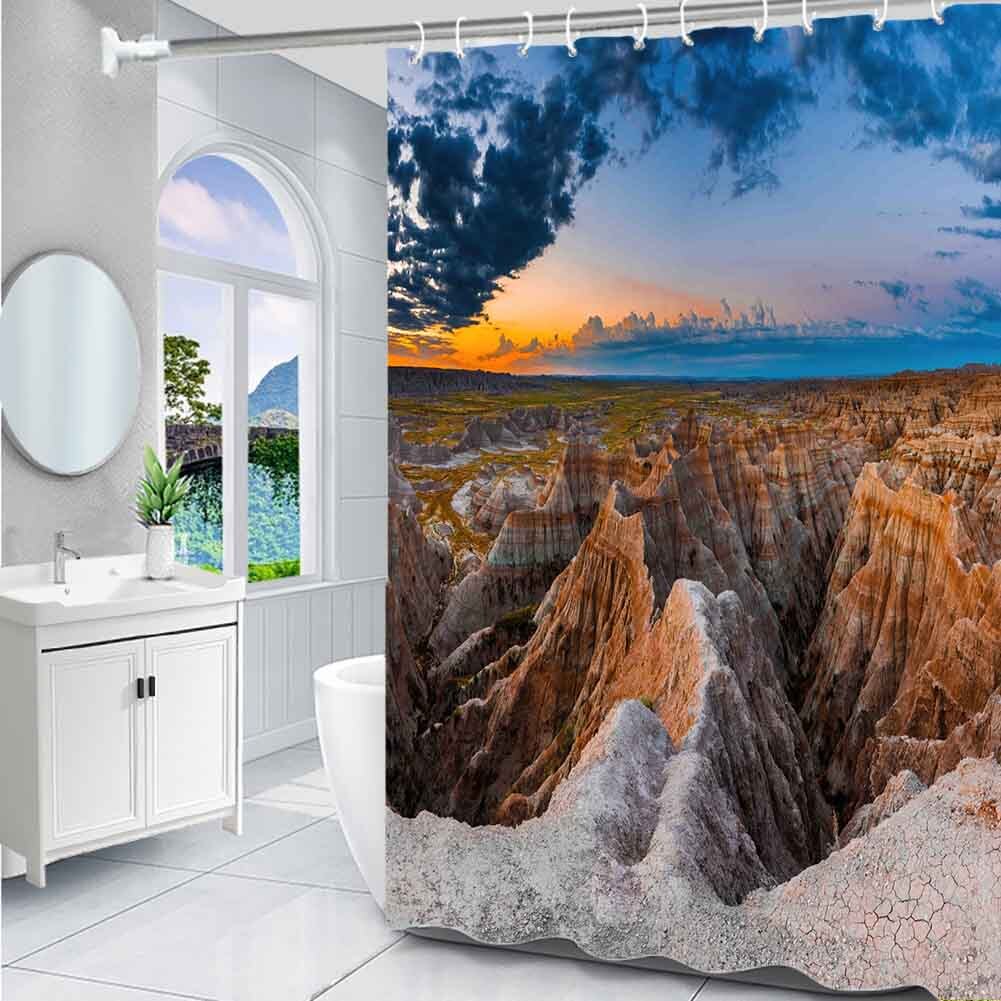 Fracture Landform Waterproof Bath Polyester Shower Curtain Liner Water Resistant