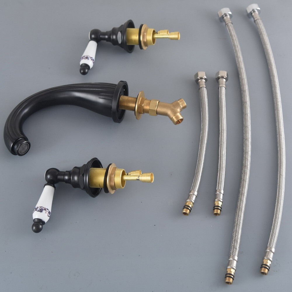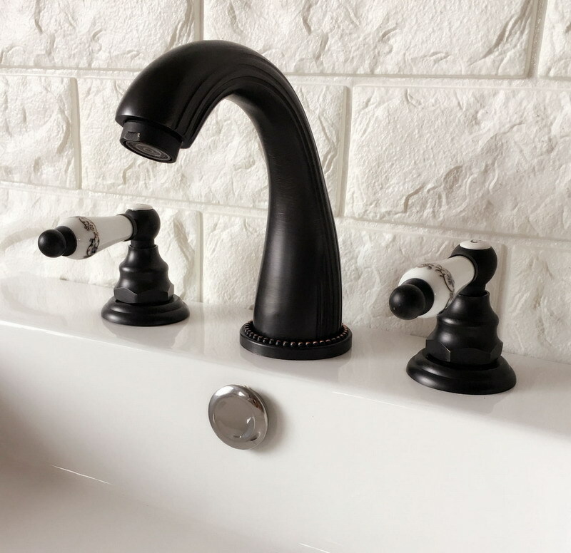 Oil Rubbed Bronze Widespread 3 Hole Basin Faucet Bathroom Tub Sink Mixer Tap
