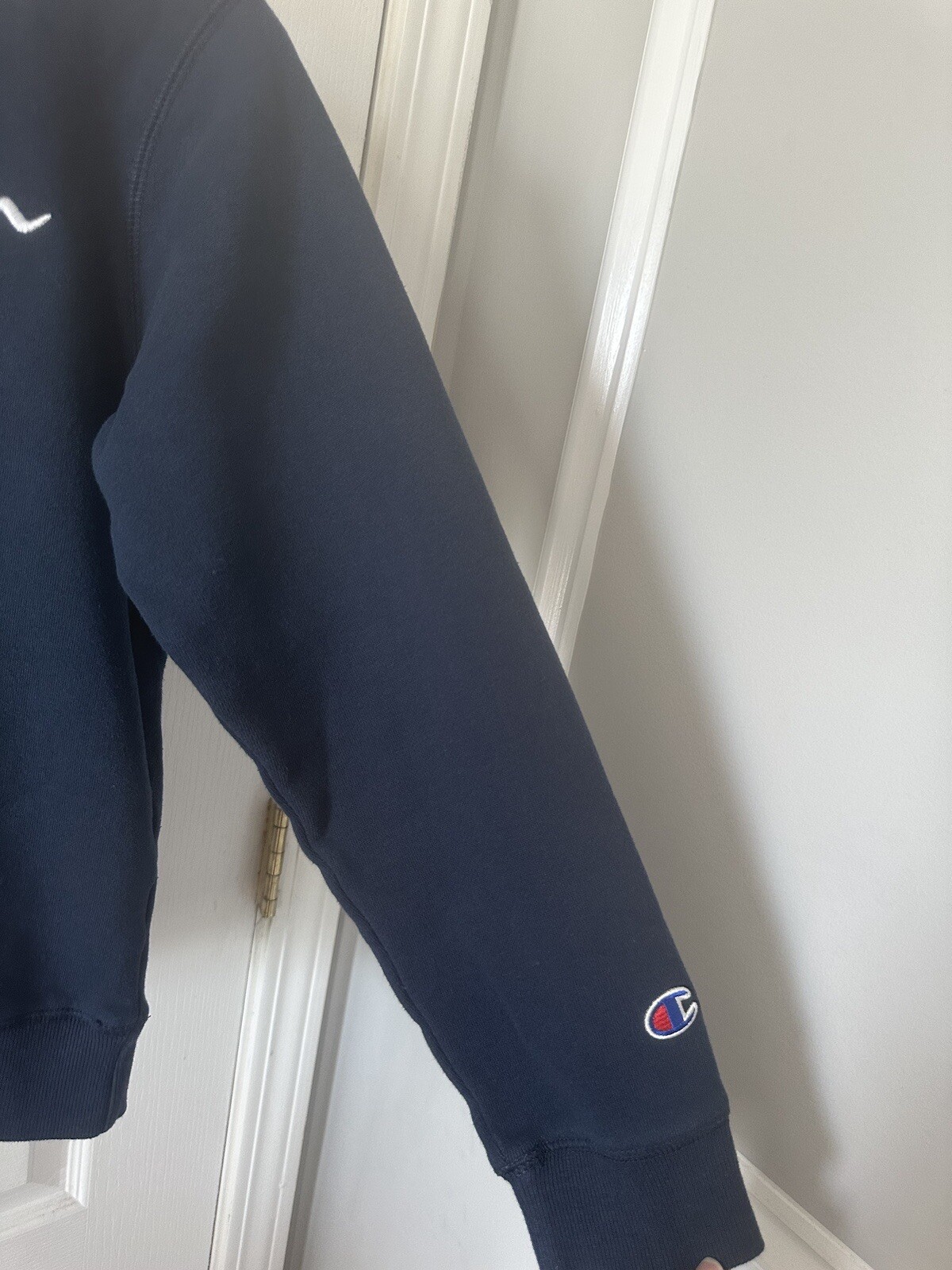 как выглядит Boys Navy Blue Champion Logo Pullover Sweatshirt/Sweatpants Set , Size L фото