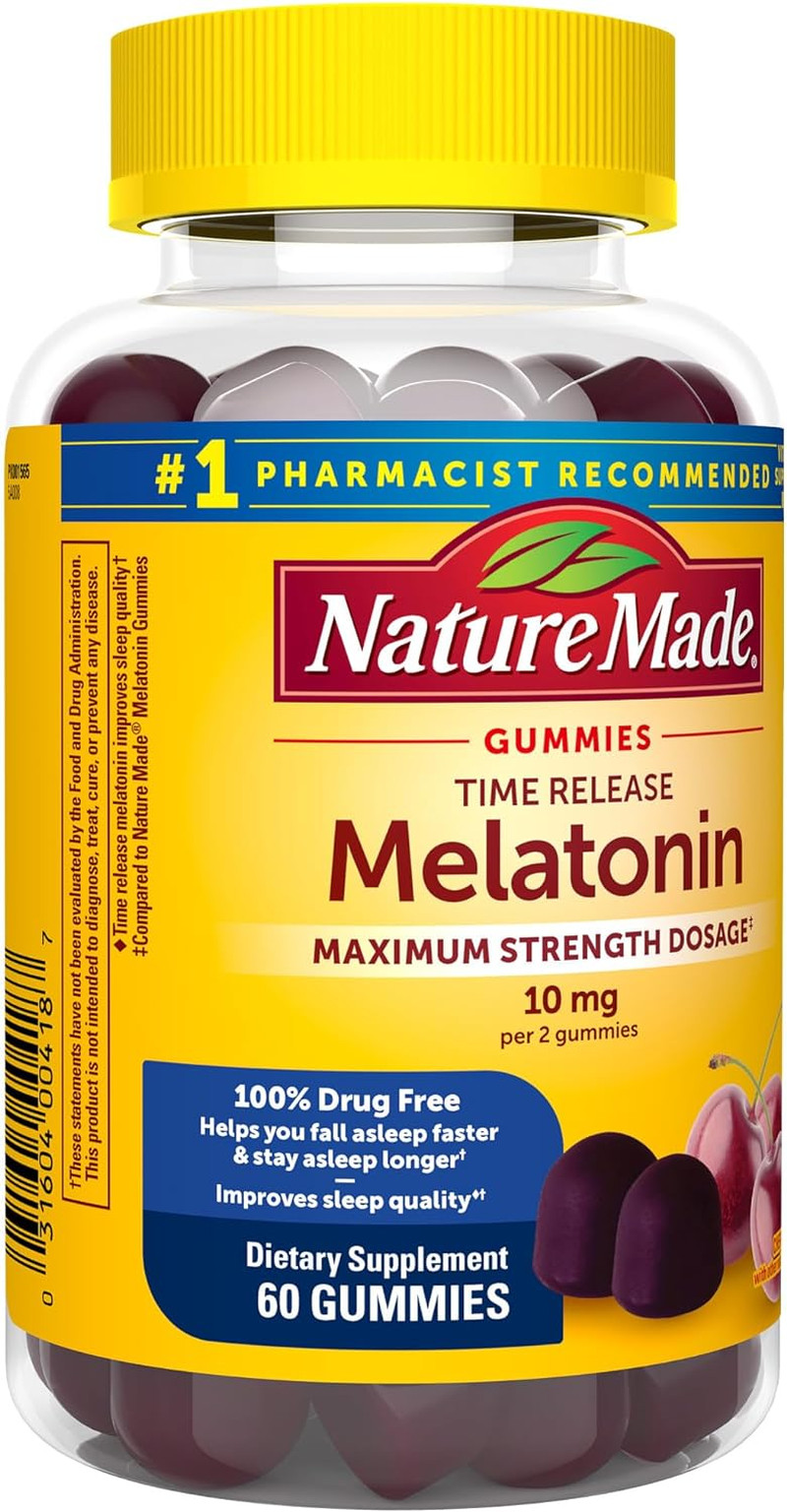 Nature Made Time Release Melatonin 10mg Gummies, Maximum Strength Sleep Aid 60ct