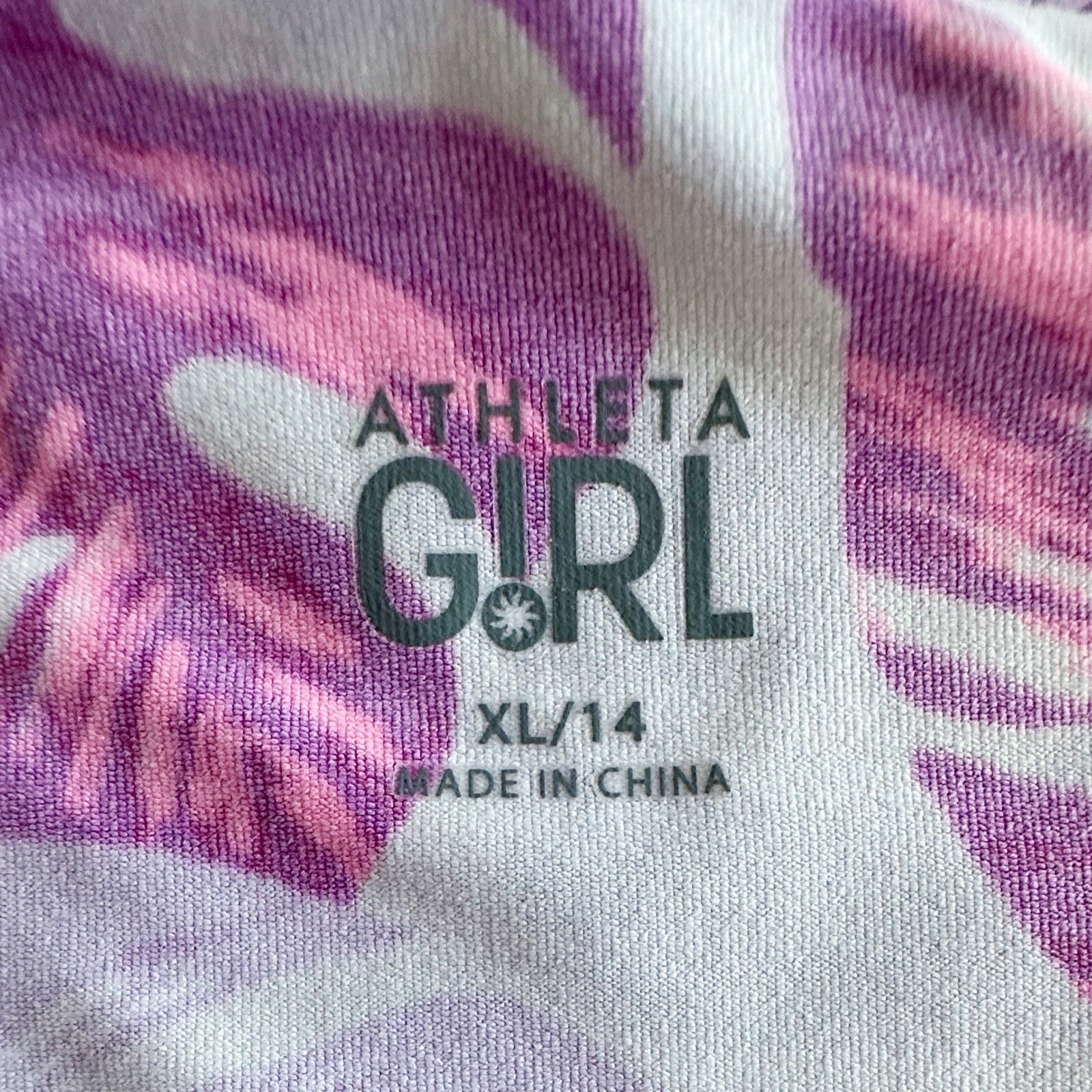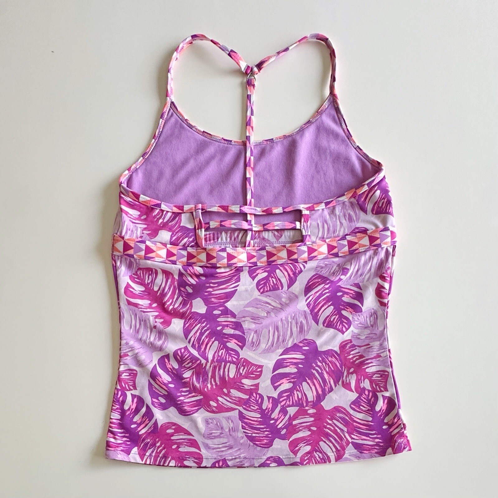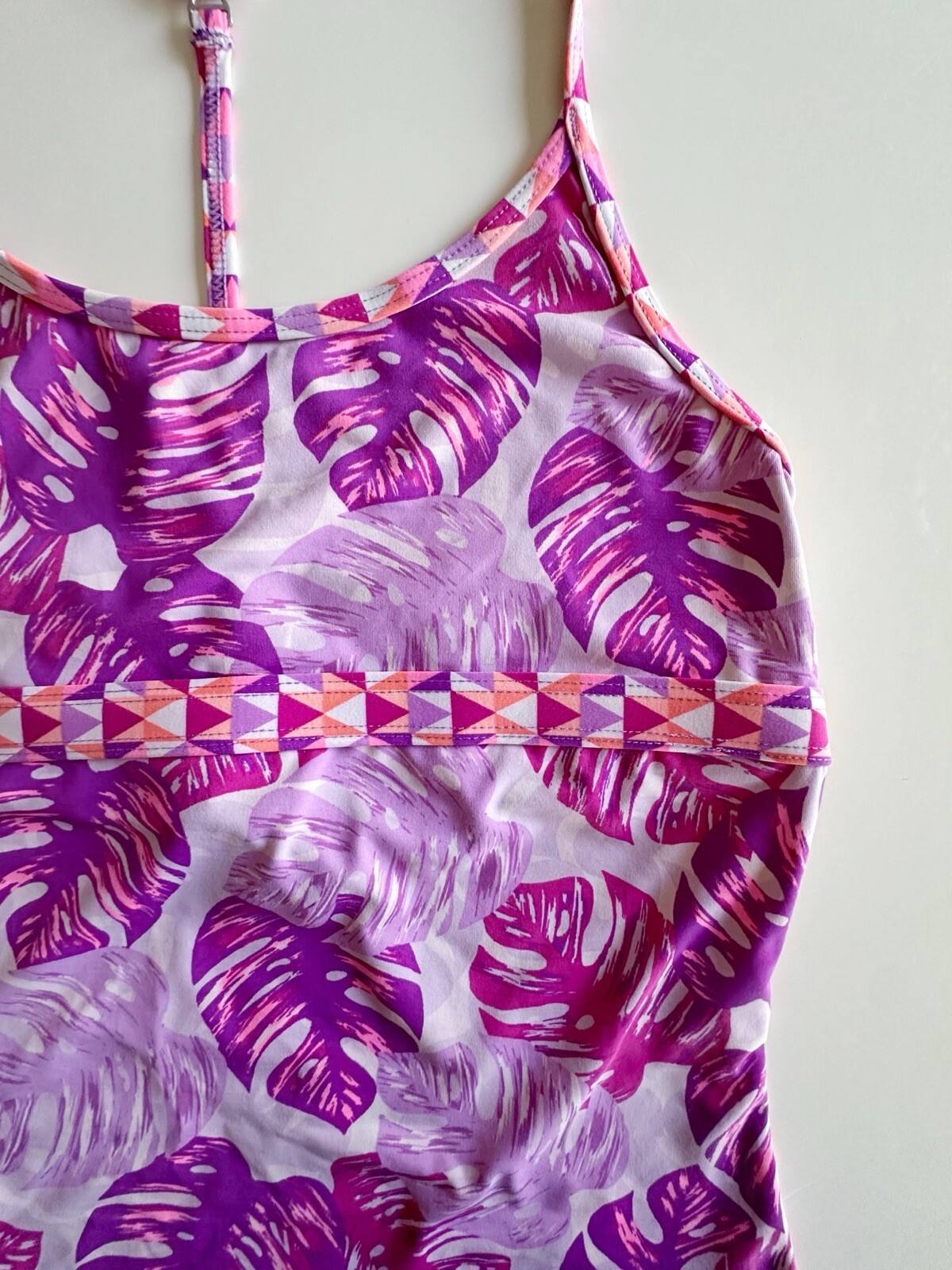 ATHLETA GIRL Tankini Swim Top : Pink Purple Palm - XL 14 Extra Large Girls