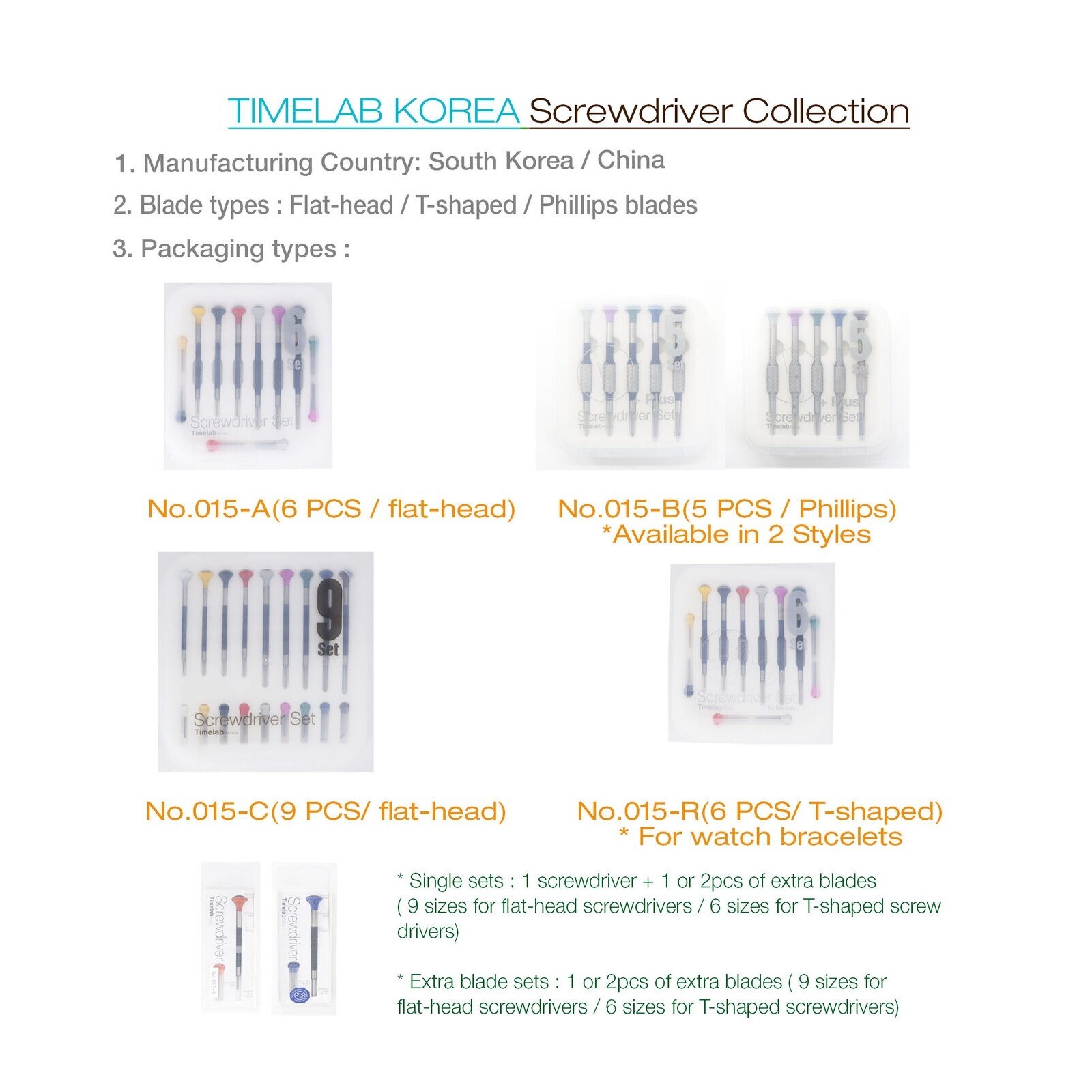 TIMELAB Watch Jewelry Repair Tools Screwdriver Kit FLAT HEAD Tip Blades 6PCS Set