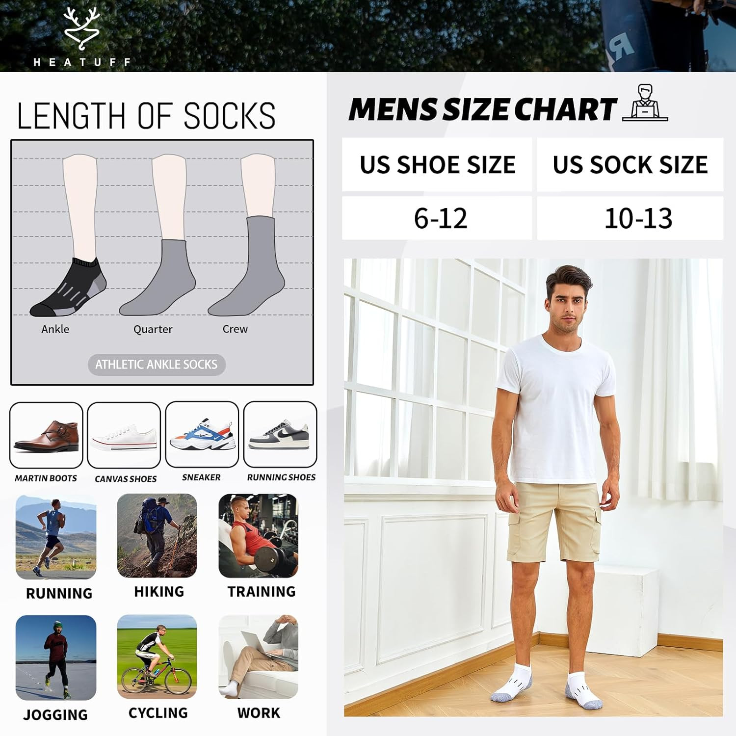 8Pairs Men's Athletic Ankle Socks Moisture Wicking Cushion Running Low Cut 6-12