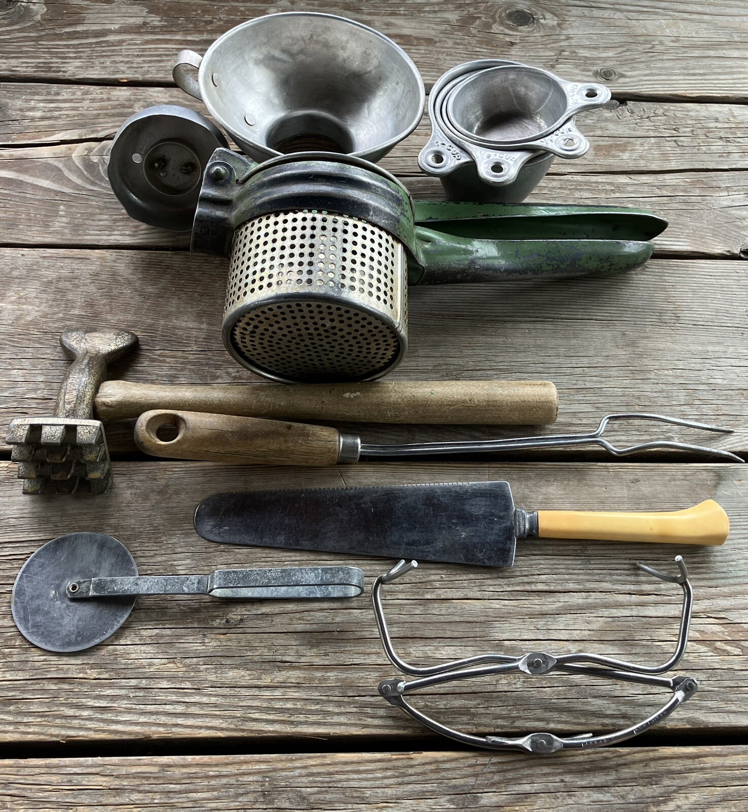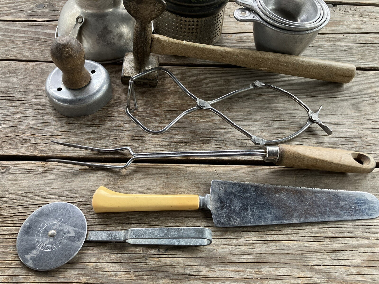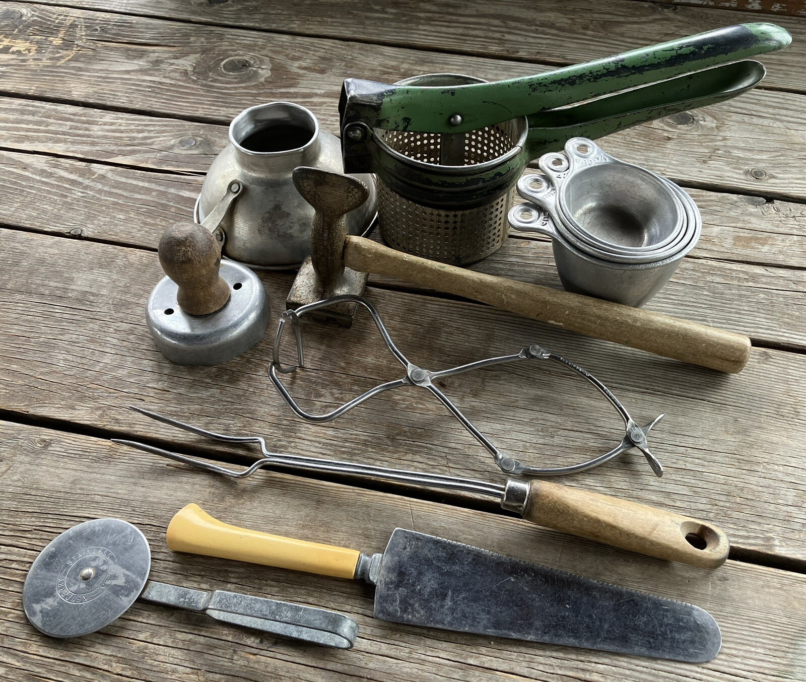 12 Piece Set Of Antique And Vintage Kitchen Utensils Aluminum Stainless