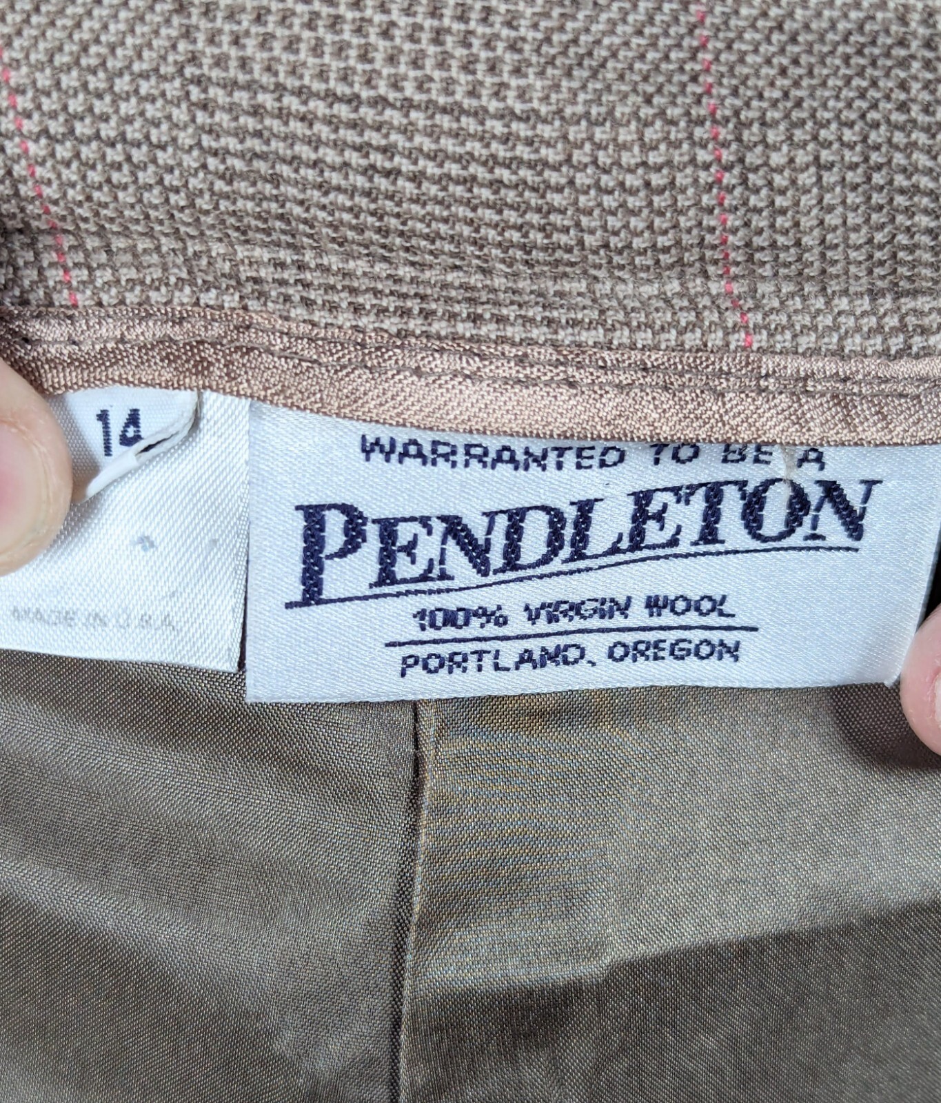 VTG 80s USA Pendleton High Rise Wool Trousers Lined Brown Plaid Check Women s 14