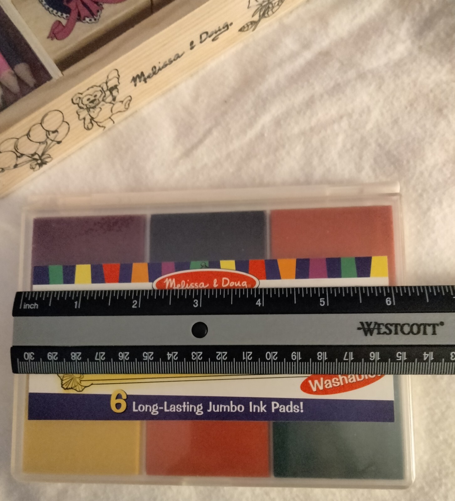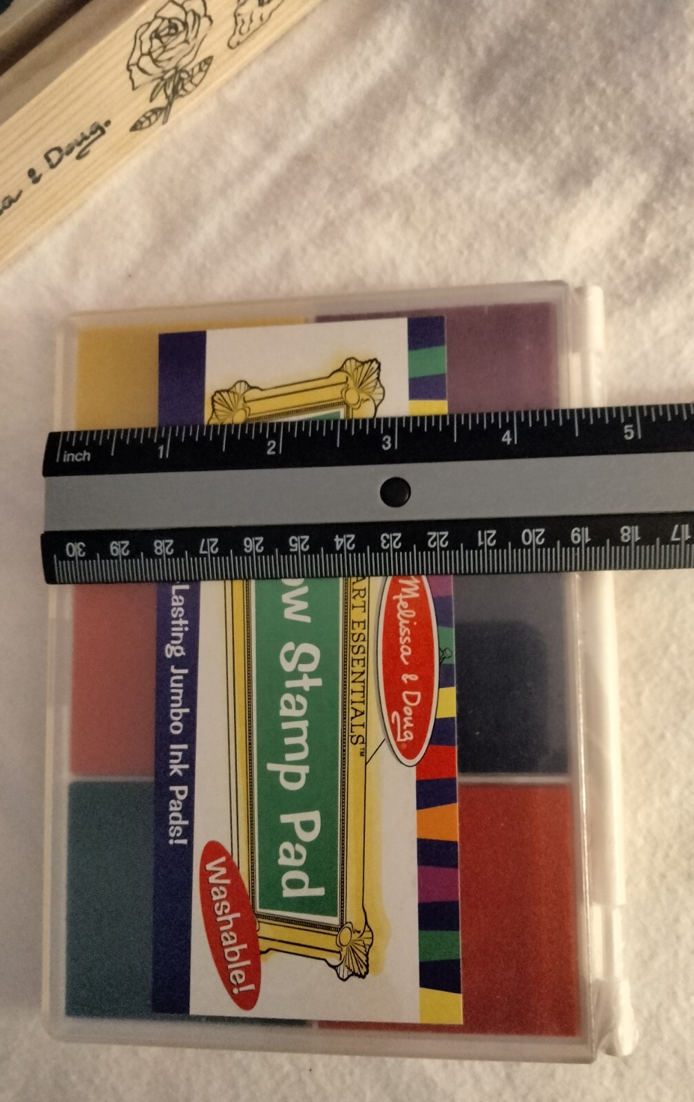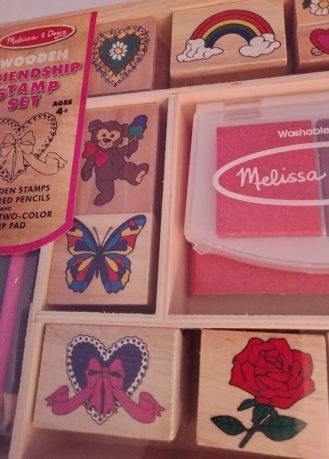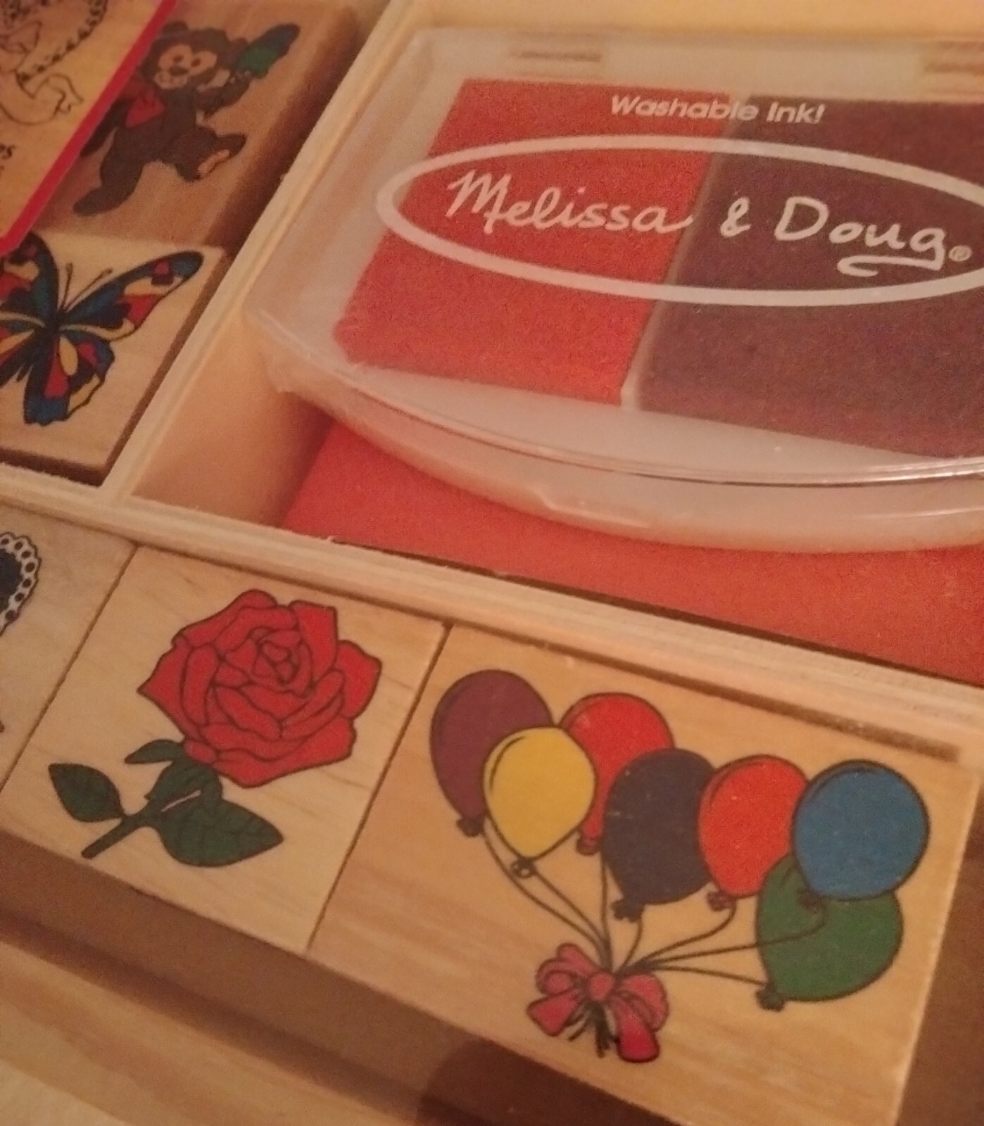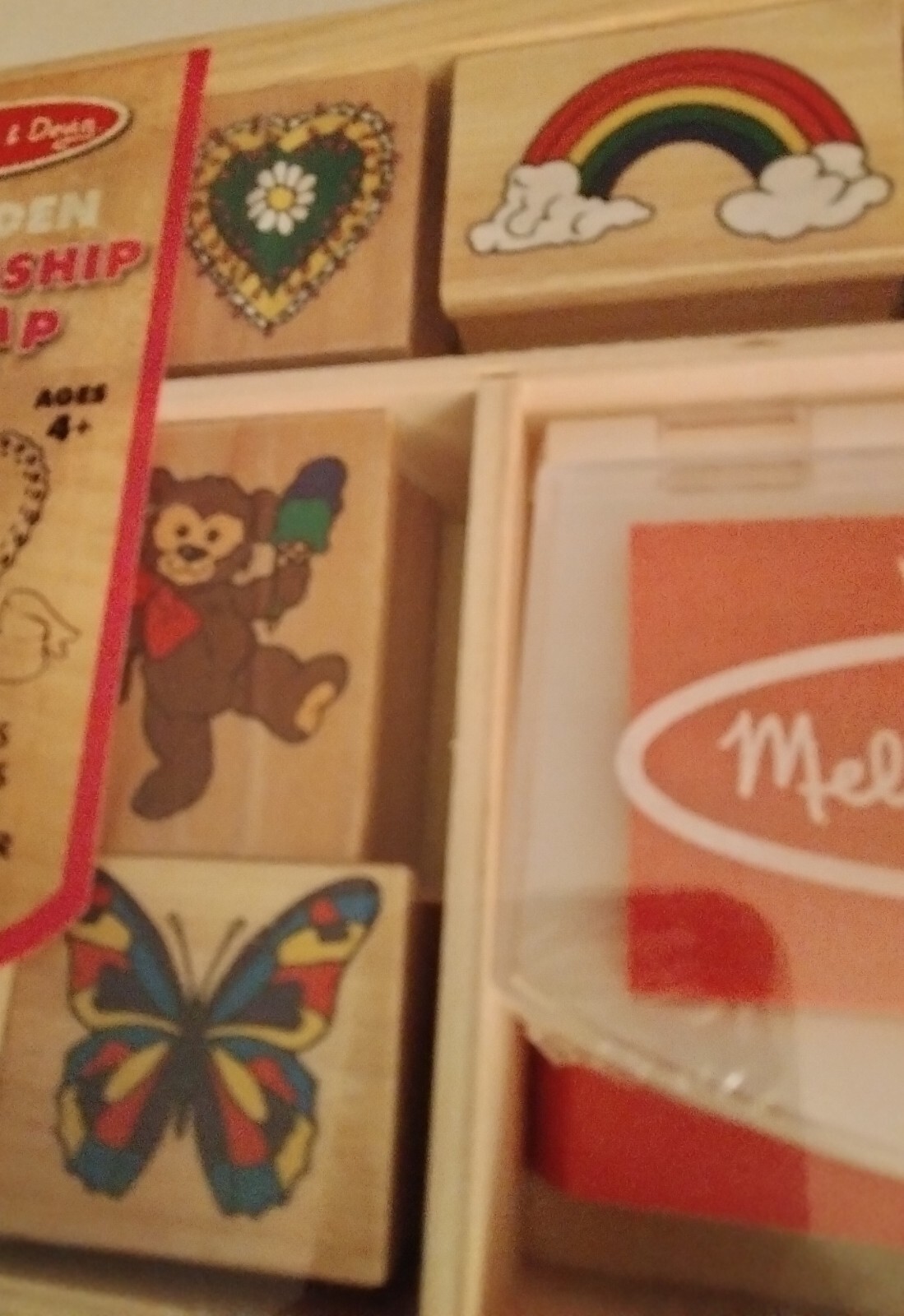 как выглядит MELISSA DOUG LOT: WOODEN FRIENDSHIP STAMP SET JUMBO 6 INK PADS, BOTH ARE NEW фото
