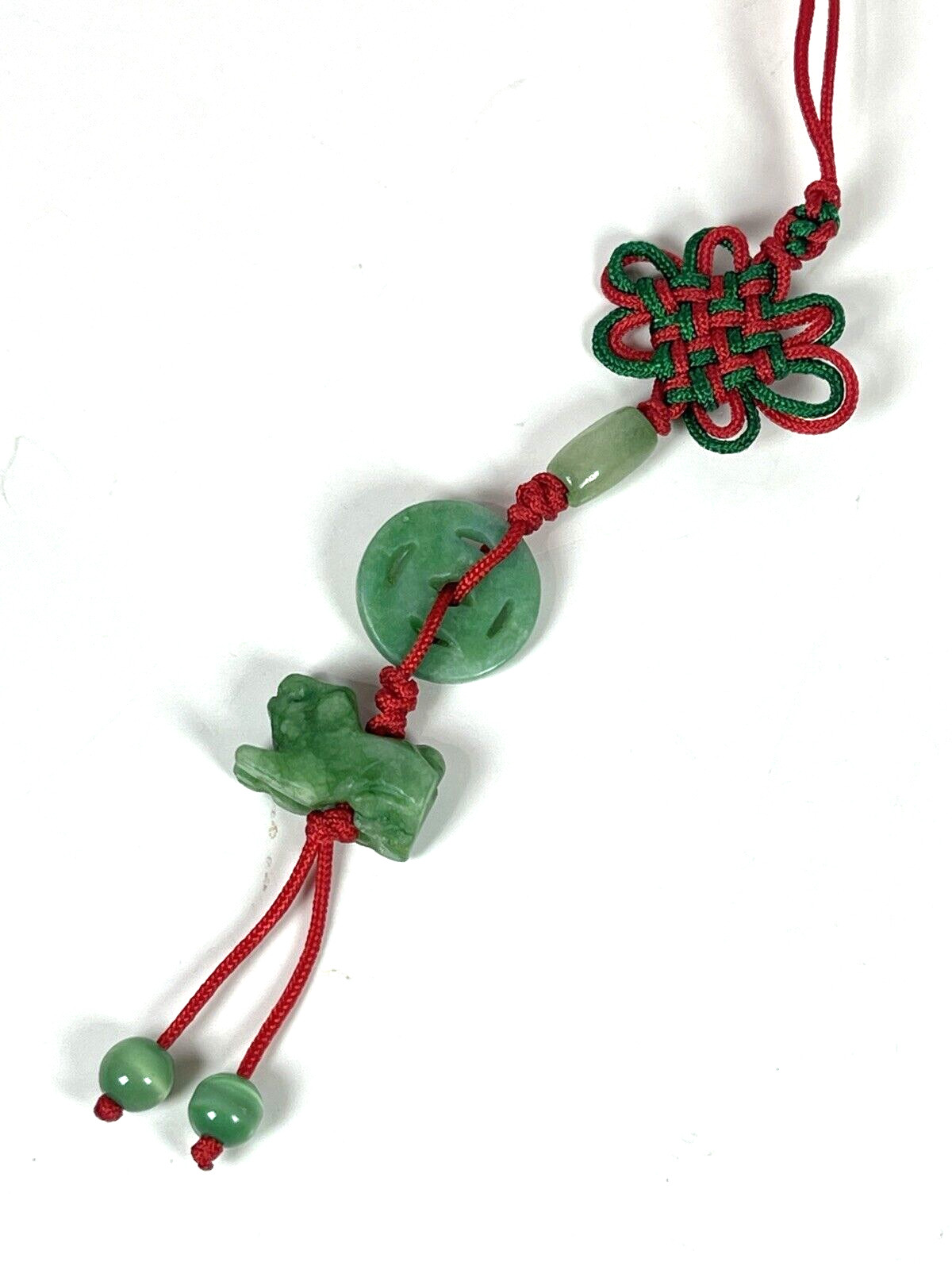 Hand Carved Natural Jade Chinese Zodiac Dog Pendant Knotted CellPhone Car Charm